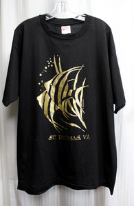Vintage 1989 - Black Single Stitch Air Waves - Gold Metallic Angel Fish, St Thomas V.I T-Shirt - Size XL