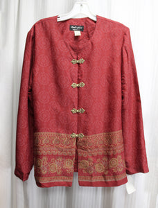 Vintage - Chad's Place - Red Bohemian Print, Tieback Waist, w/ Gold Metal Frog & Ring Decorative Closures - Size 14 (w/ Original Tags)