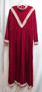 Vintage 60's/70's - Red Velvet w/ Ivory Lace Victoriana Maxi Dress - Size 13/14 (See Measurements 30" Waist)