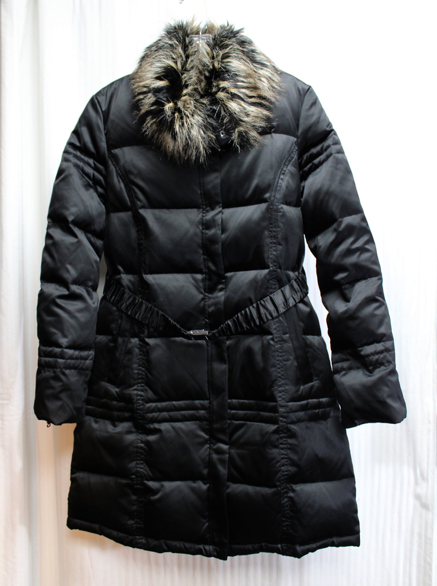 Via Spiga - Black Down Puffer Coat w/ Faux Fur Trim Collar