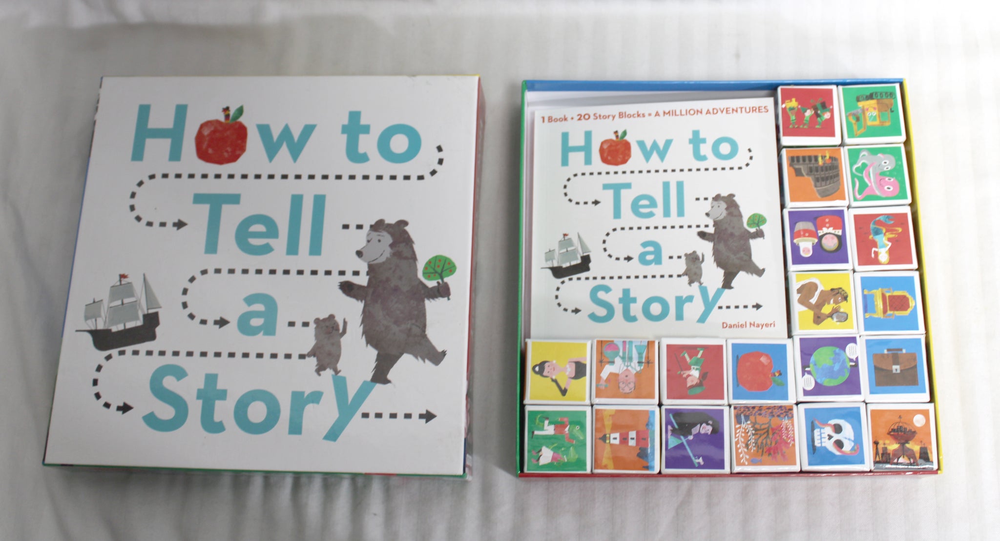 " book paired with a collection of 20 six-sided, beautifully illustrated storytelling cubes that make it easy for any imaginative child (and that is every child) to start creating wonderful stories. Roll the blocks, and you can make anything happen, to anyone, anyplace in this or any other world.