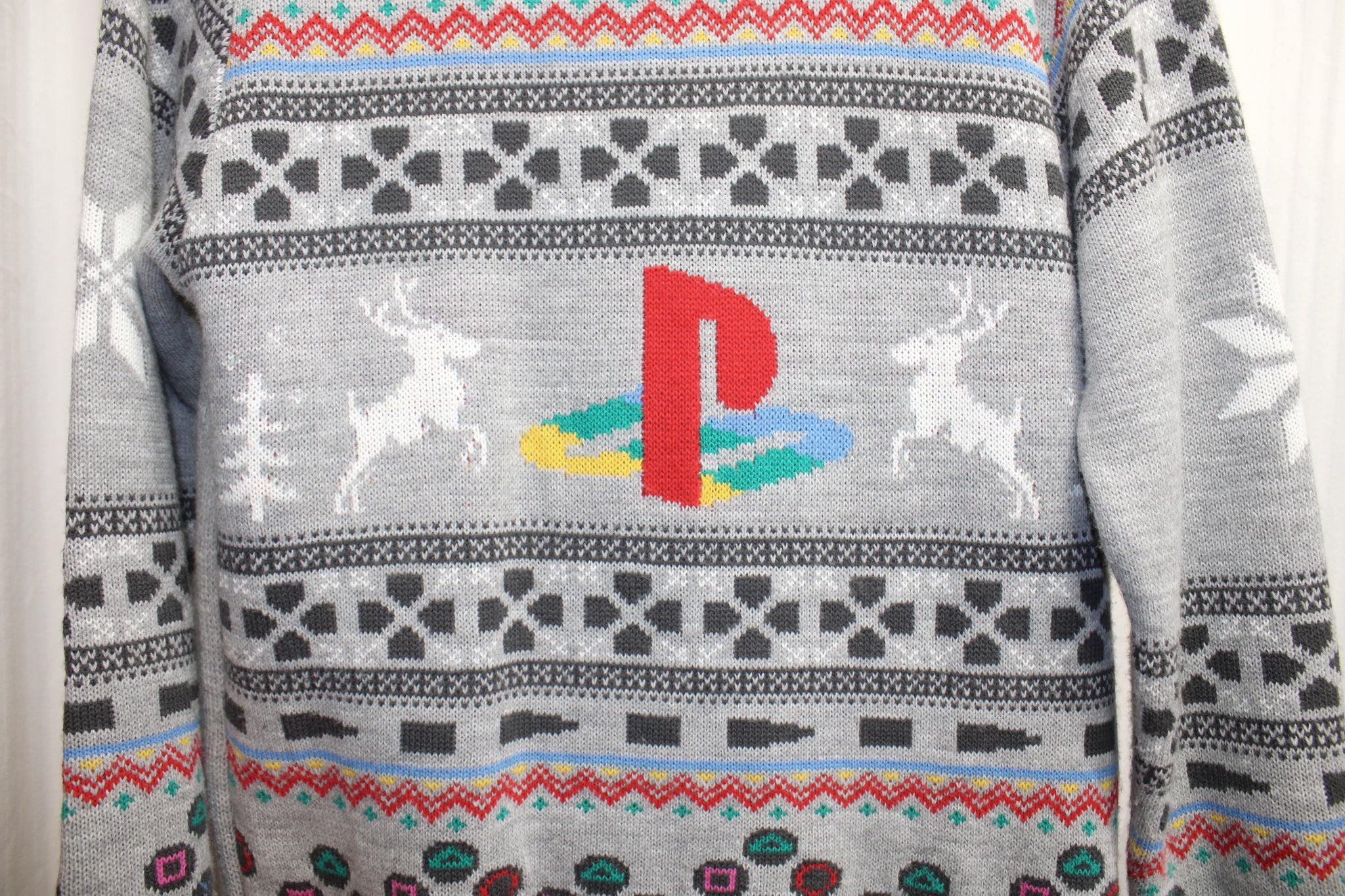 Numbskull - Holiday / Ugly Christmas - Sony Playstation, Heathered Gray, Holiday Pullover Sweater