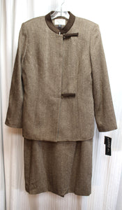 Vintage - Kasper ASL - 2 PC Brown Wool Blend Mandarin Collar Skirt Suit - Size 8 (W/ Original Tags)