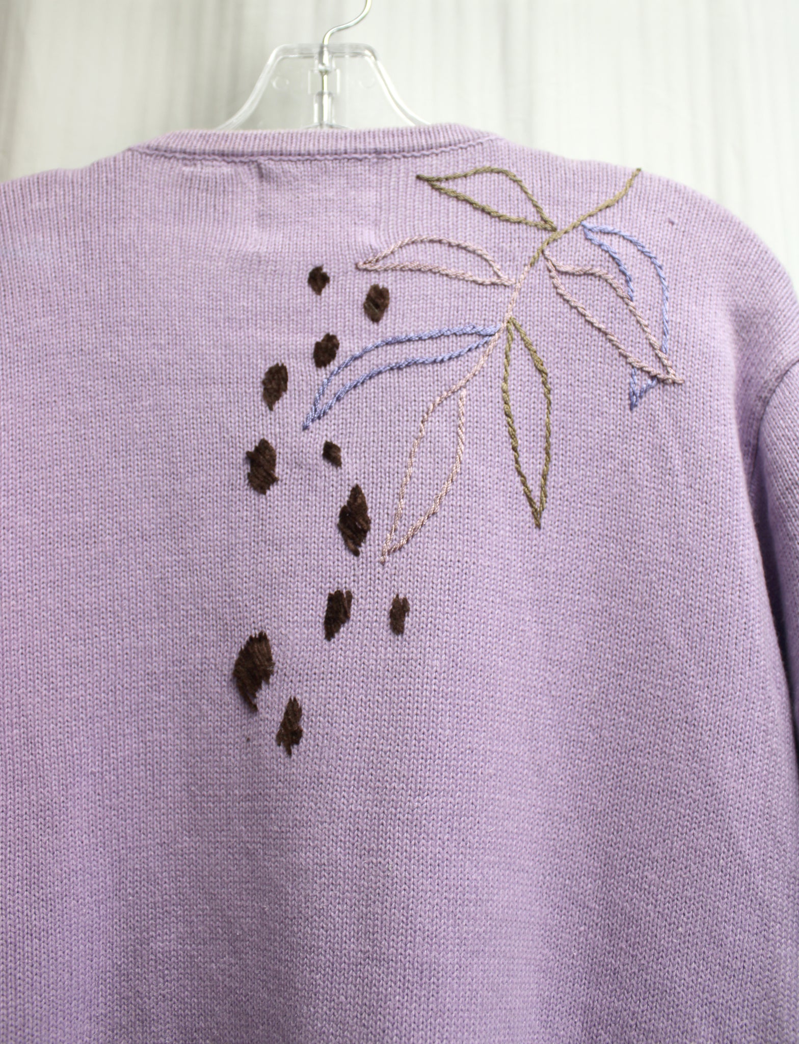Storybook Knits - 2PC Lavender Leopard Spot & Leaf Embroidery w/ Sequined Leopard Cardigan & Leaf Buttons & Matching Maxi Skirt