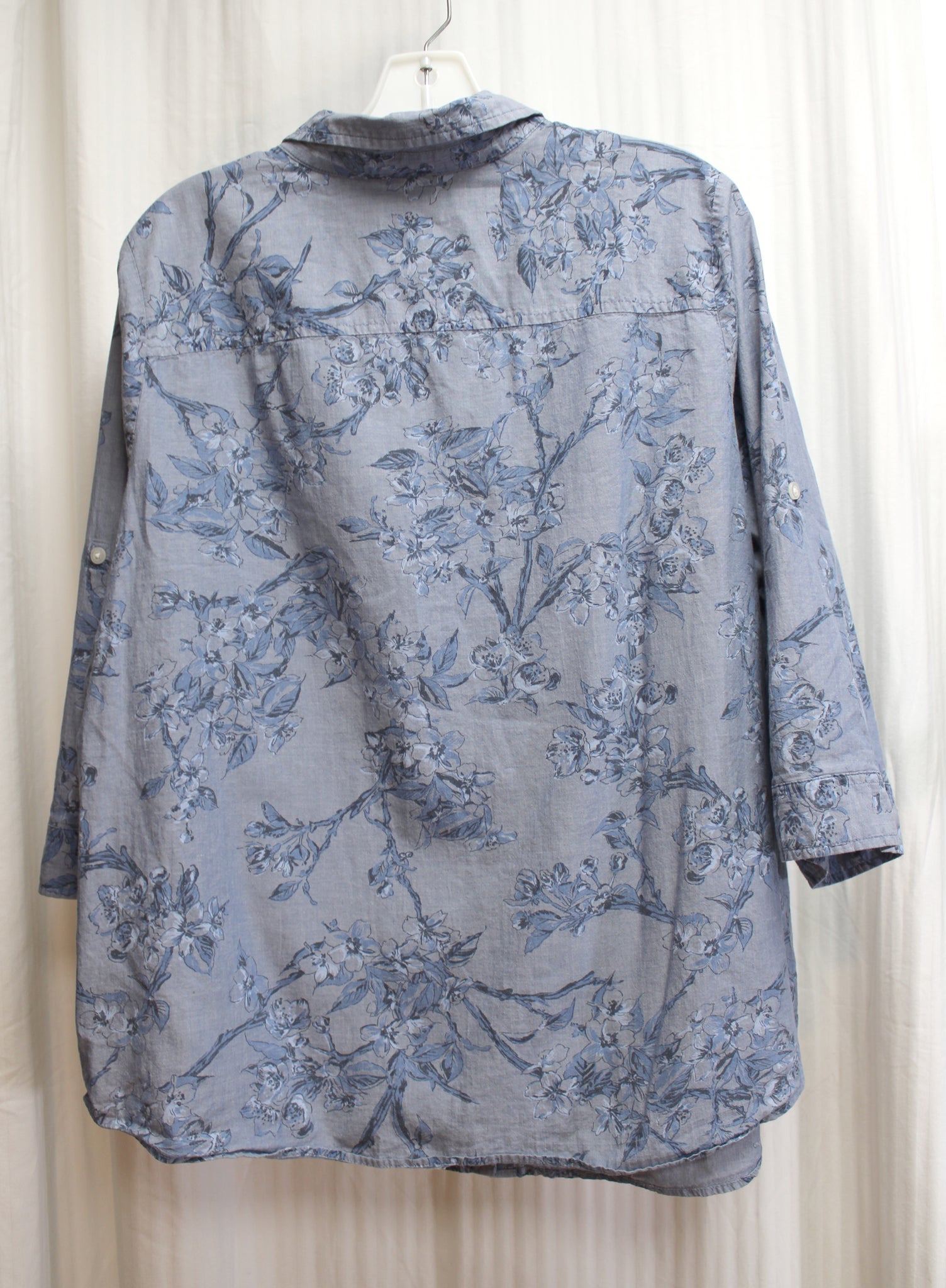 Croft & Barrow - Blue Floral Chambray 3/4th, Button Front Shirt Size 1X 16" Shoulders26" Length24" Chest (pit to pit)100% Cotton