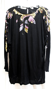 Vintage- Jane Ashley - Black Beaded & Sequined Long Sleeve Dolman Tunic Top - Size M