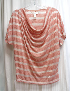 Max Studio - Heathered Red & White Burnout Sheer & Semi Sheer Stripe Cowl Neckline Dolman Sleeve Top - Size M