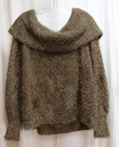 Express - Drab Green - Off/On Shoulder Fuzzy, Bishop Sleeve Soft Sweater - Size L