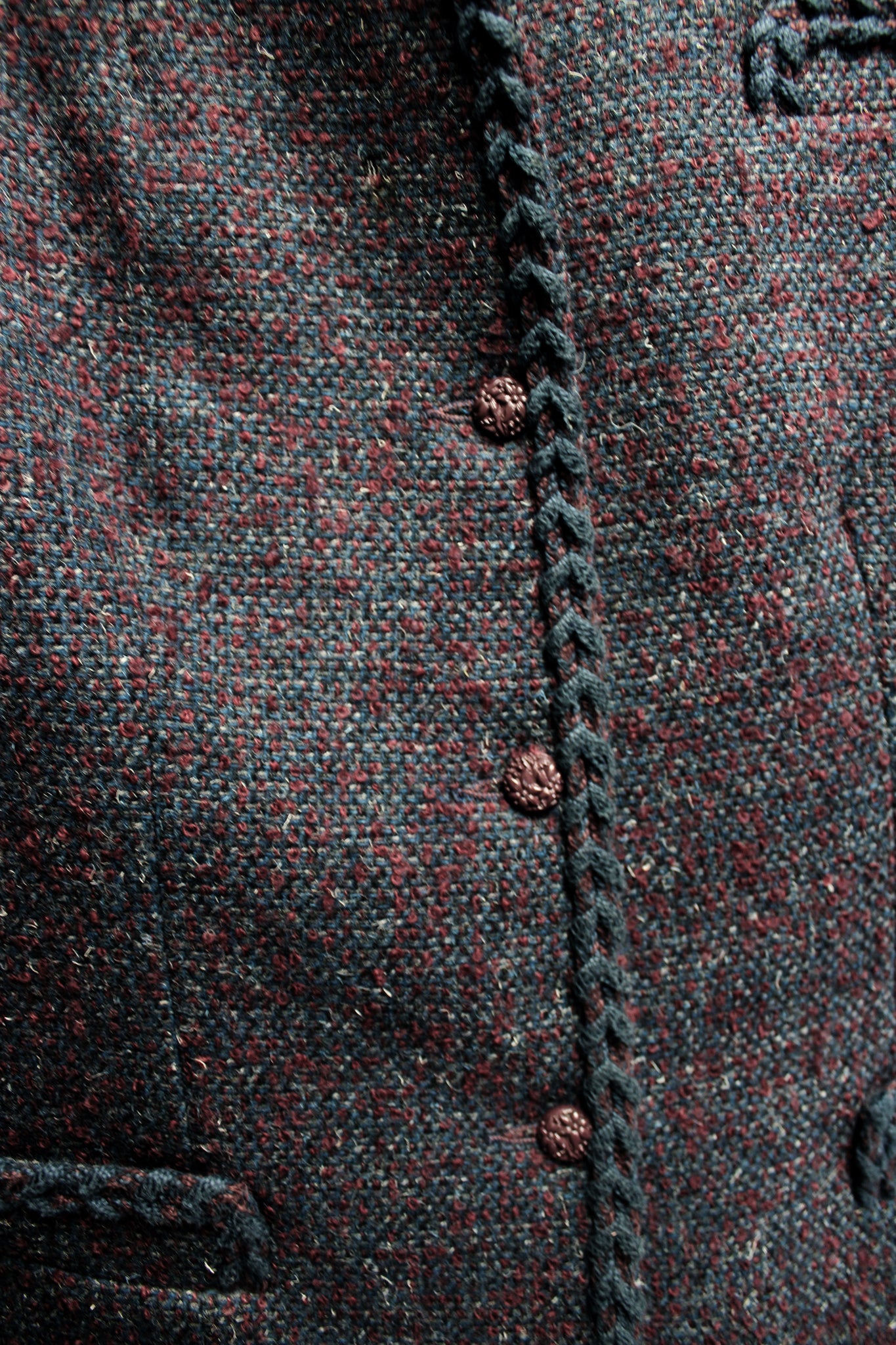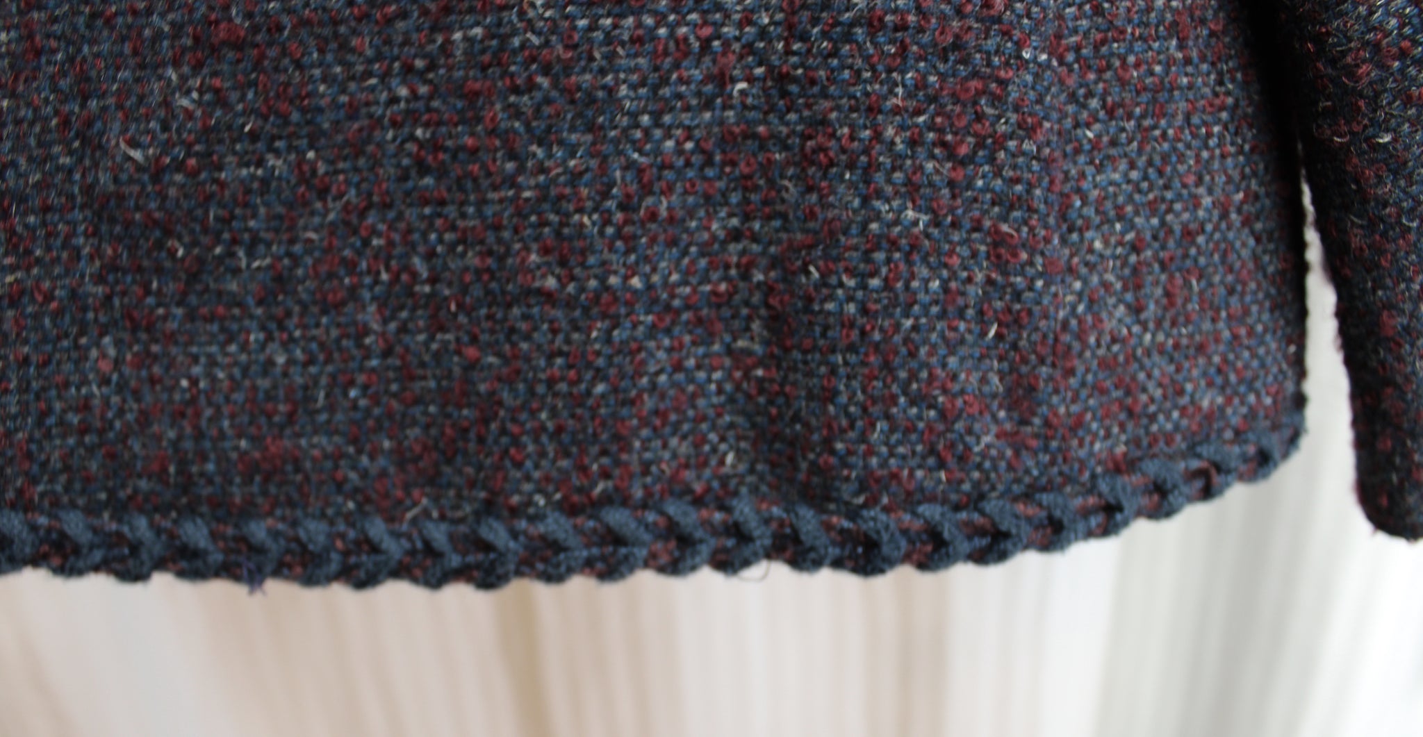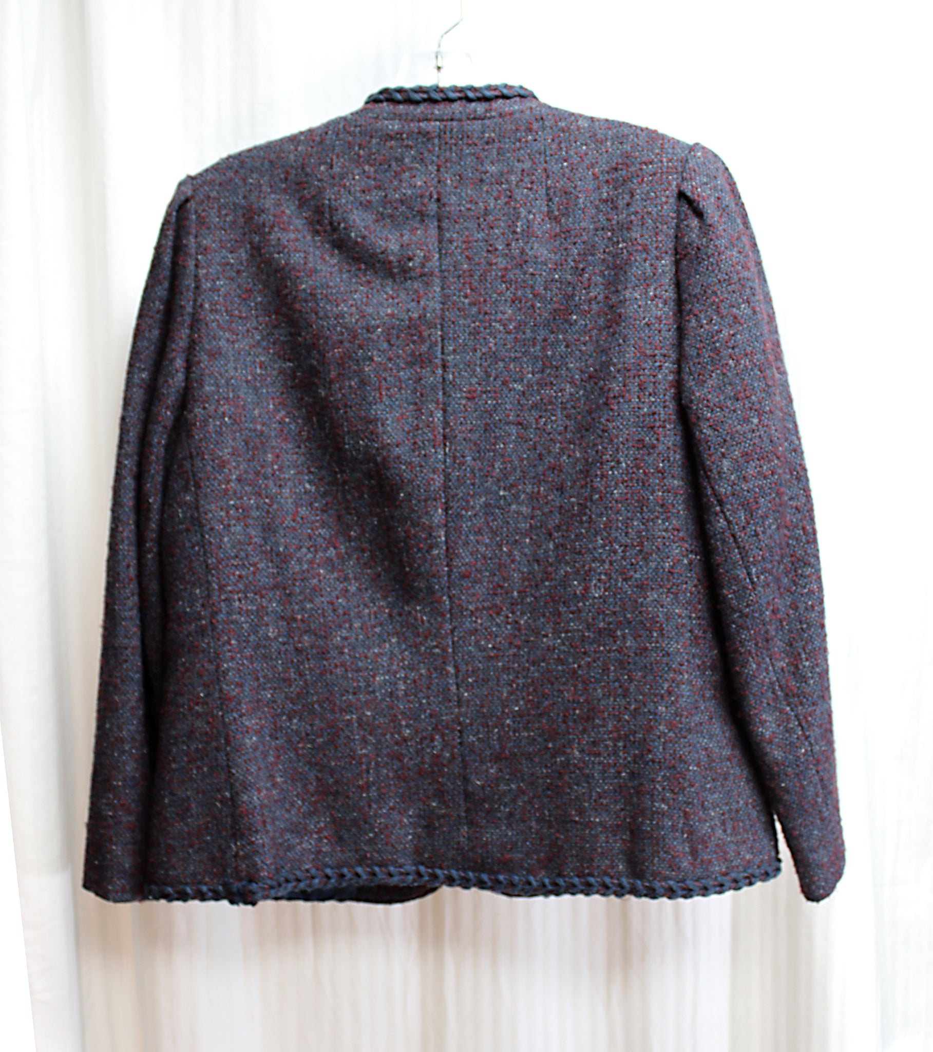 Vintage 1960's - Madame Runge (Canada) - Brick Red & Blue Heathered Wool Blend w/ Braided Stitch Hem Detailing Jacket