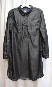 Vintage - Ice - Black Sleeveless, Crossover Ruffle V-Neckline Denim Short Dress - Size 8