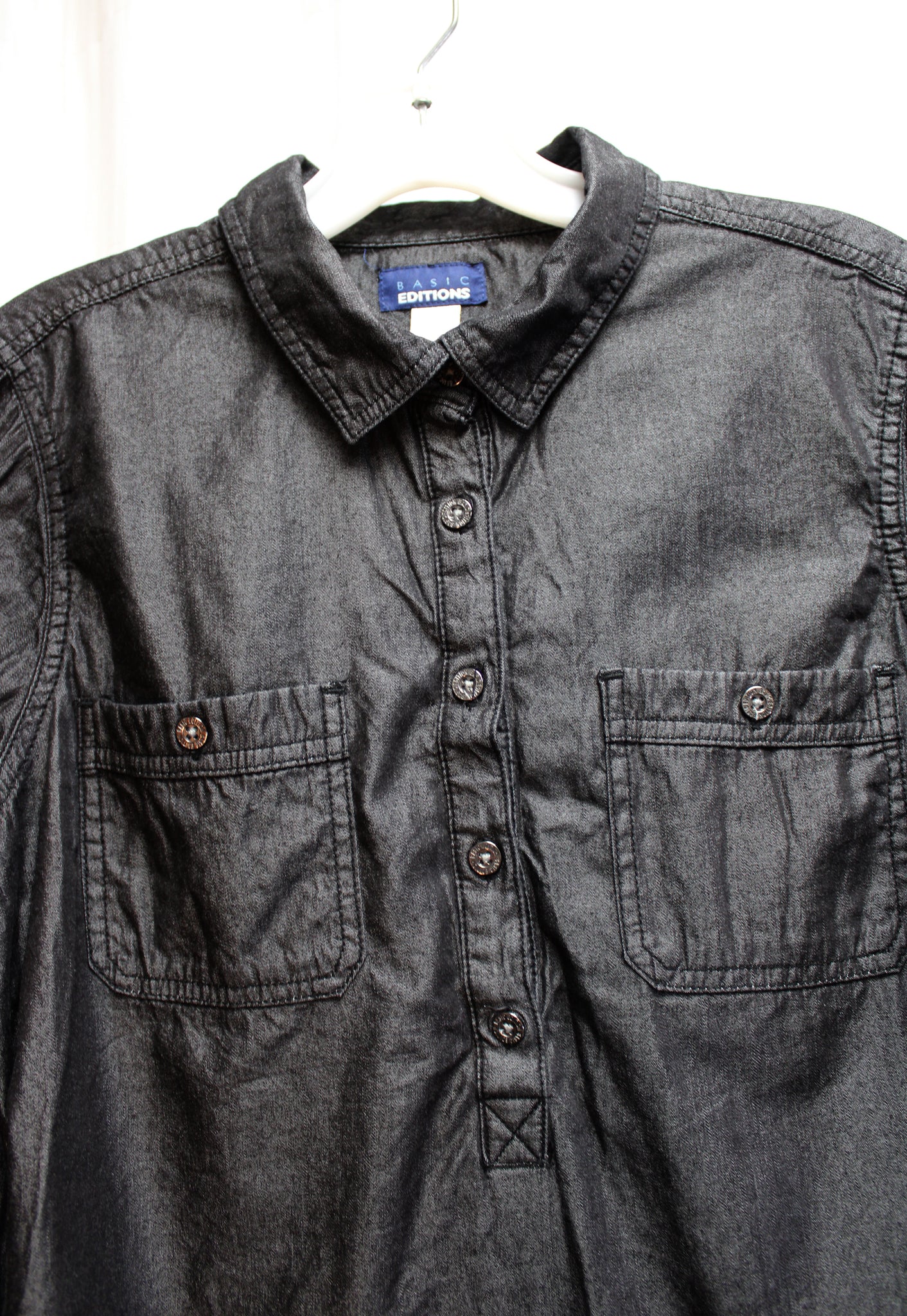 Basic Editions - Black Silky Chambray Shirt Dress - Size L