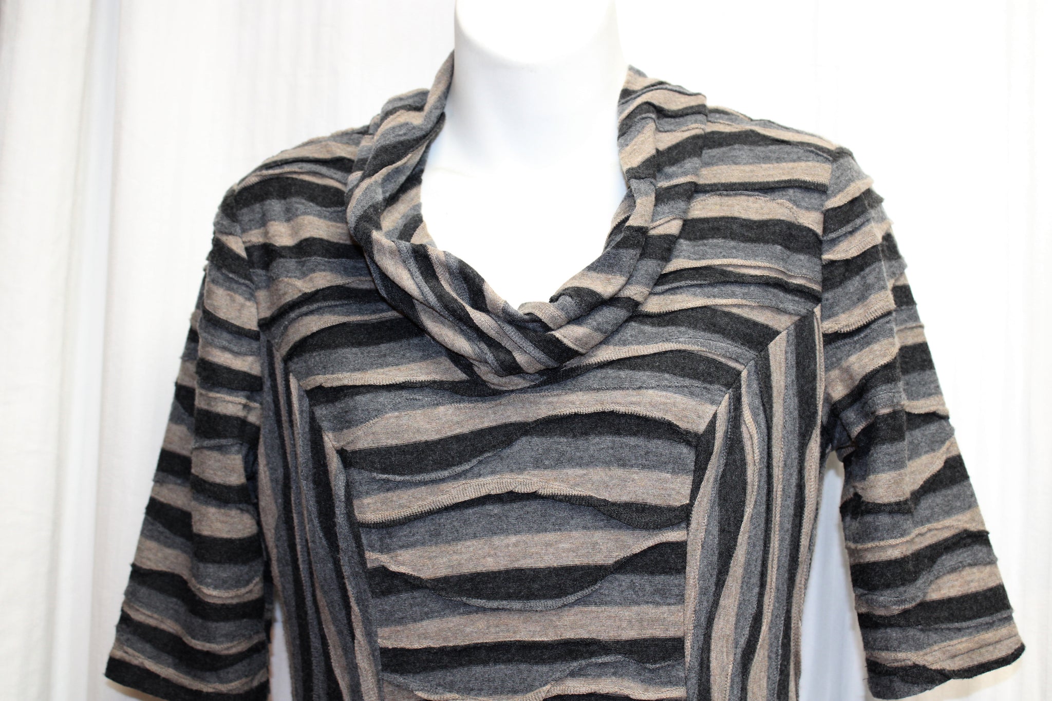Connected Petite - Erath Toned Stripe - Patchwork Cowl Neck Dress