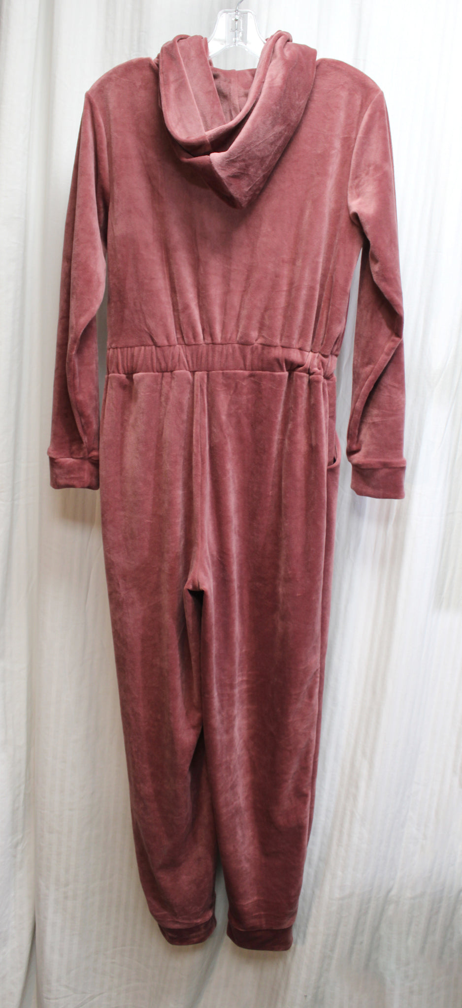 Express - Dusty Rose Hooded, Zip Front Velour Velvet Jumpsuit