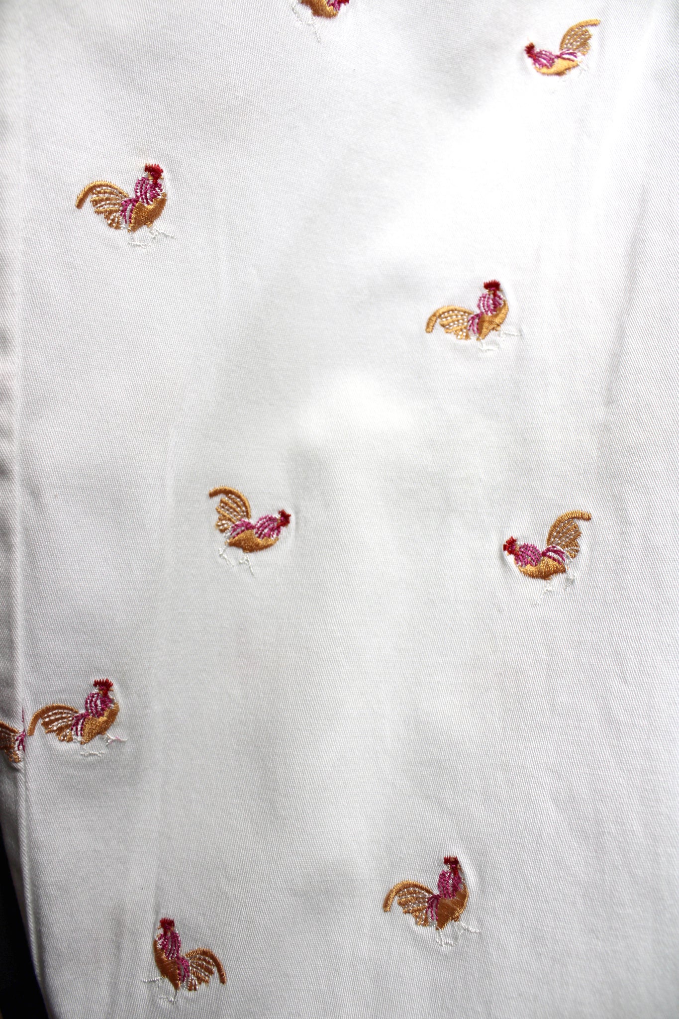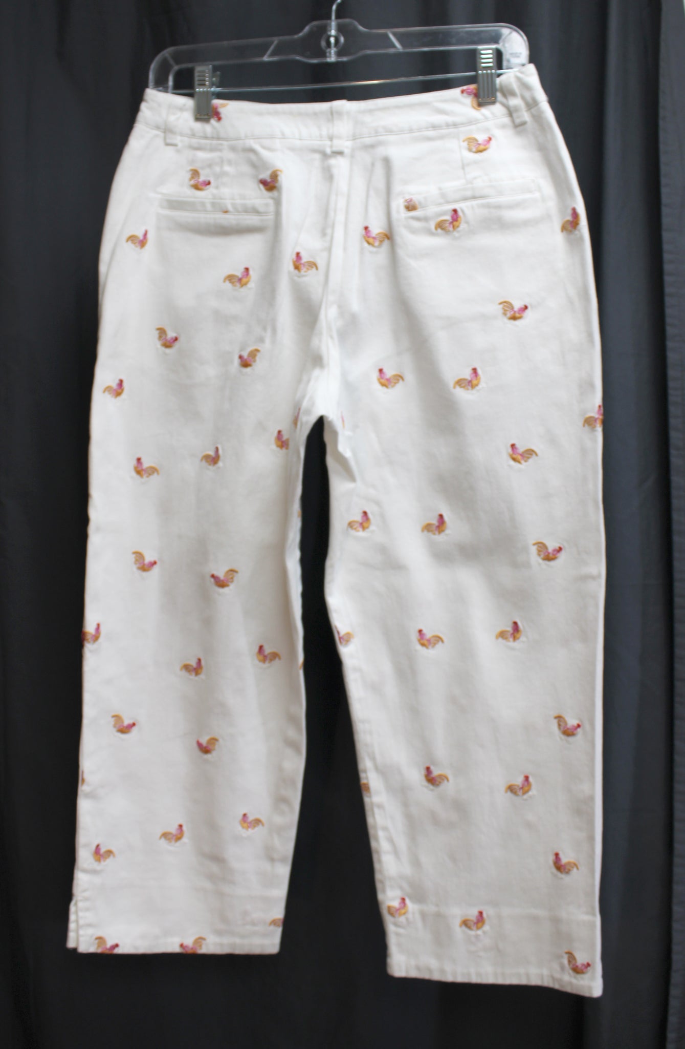 Larry Levine Stretch - White Rooster/Hen Embroidered Cropped Pants