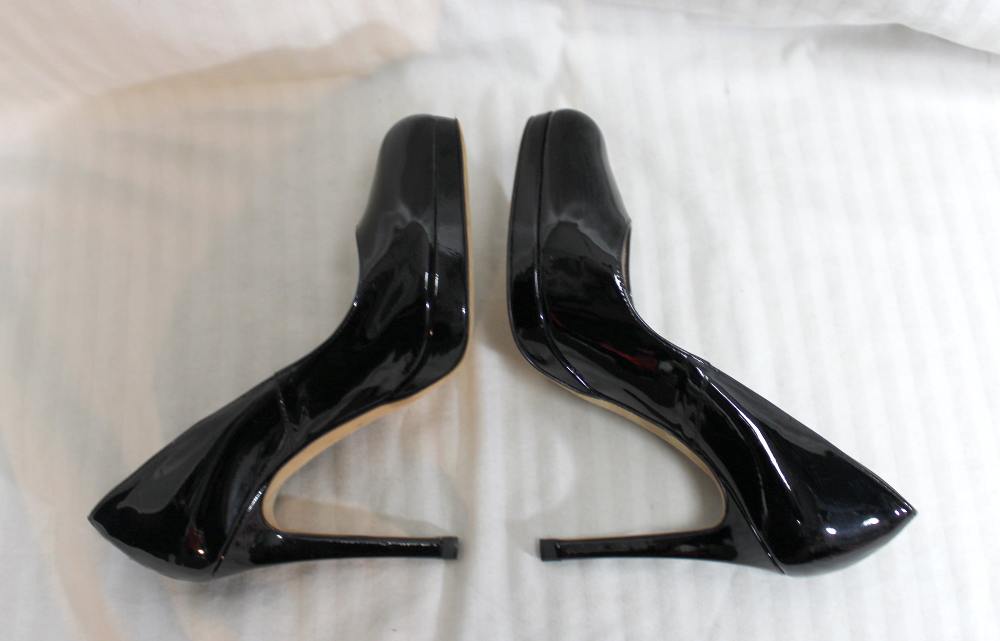 L.K. Bennett - Black Patent leather Small Platform Stiletto Heel Pumps Size EURO 38 (US 7.5)4" Heel.25" Platform