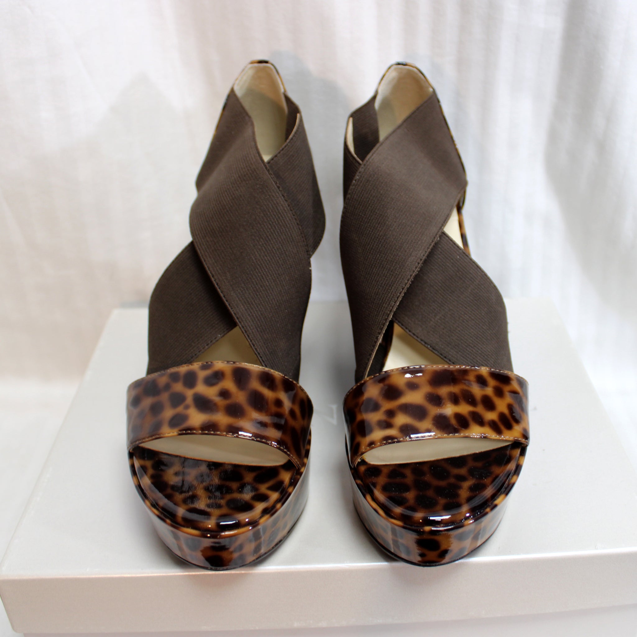 Taryn Rose - Sawyer Brown Leopard Print Patent Leather Wedge Platforms Size 8.5(in Box)