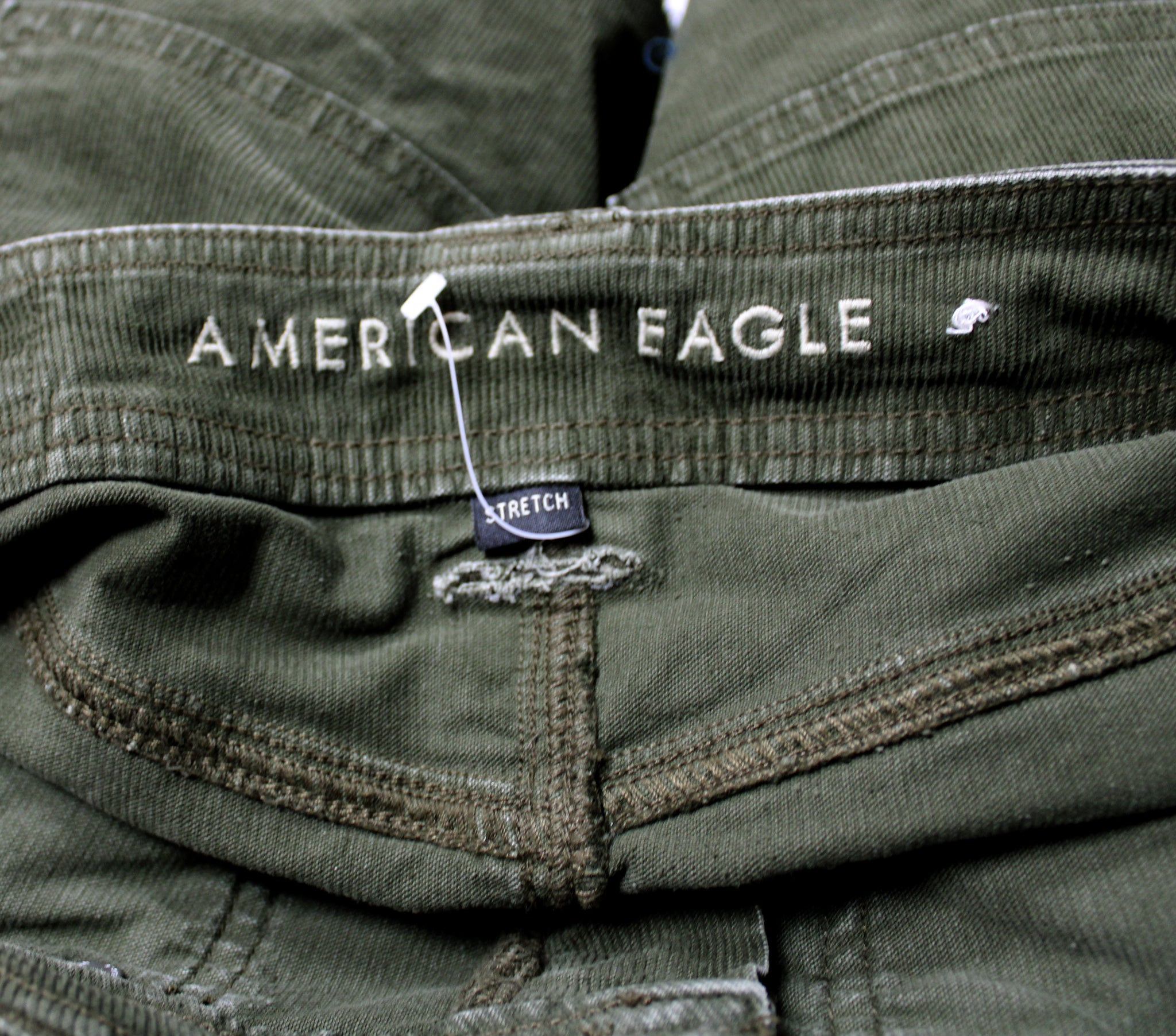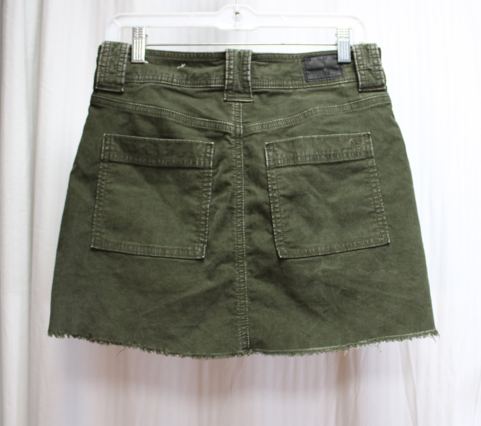 American Eagle - Olive Green Corduroy Utility Cargo Mini Skirt Size 429.75" Waist14" Length98% Cotton2% Elastane