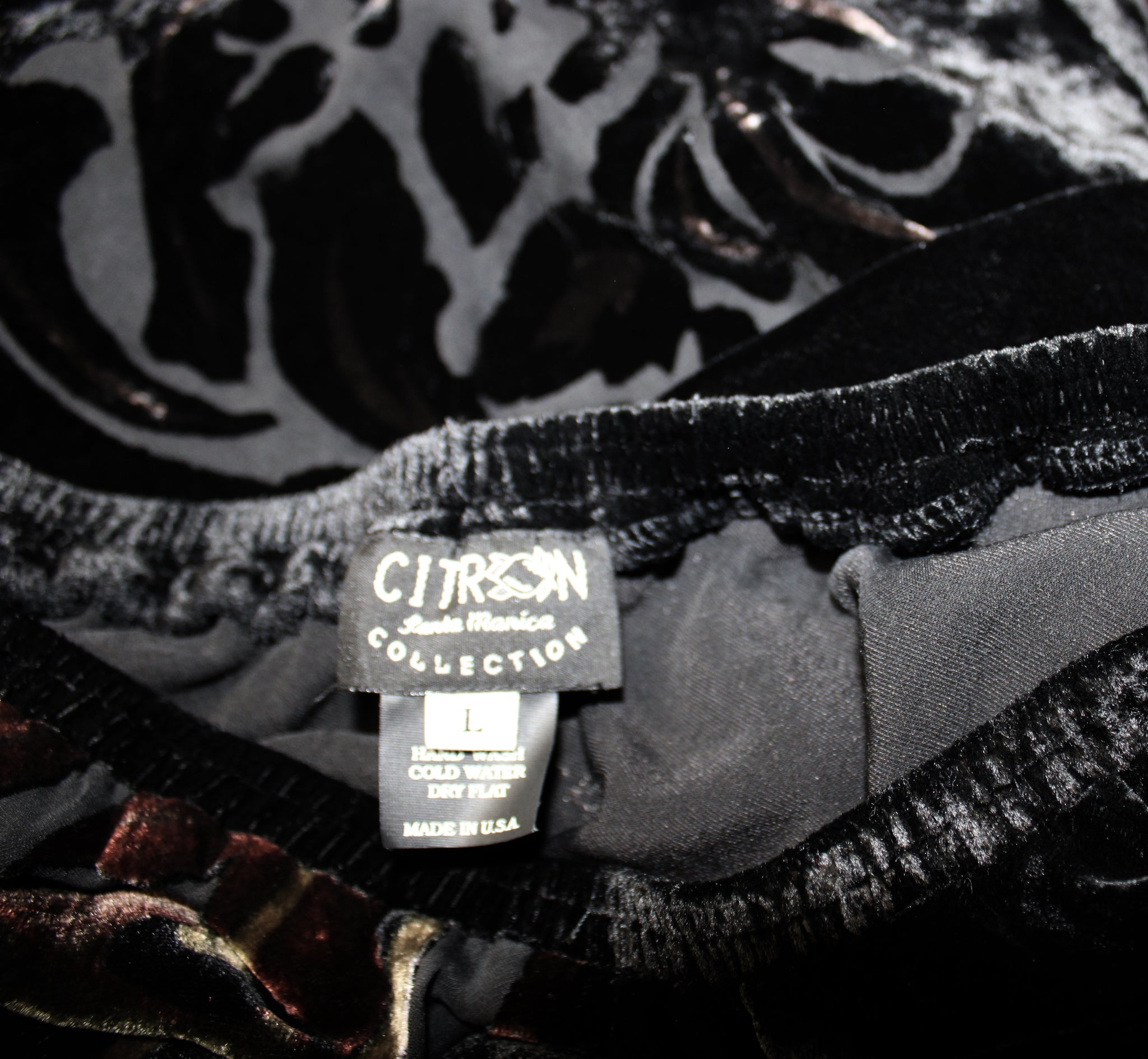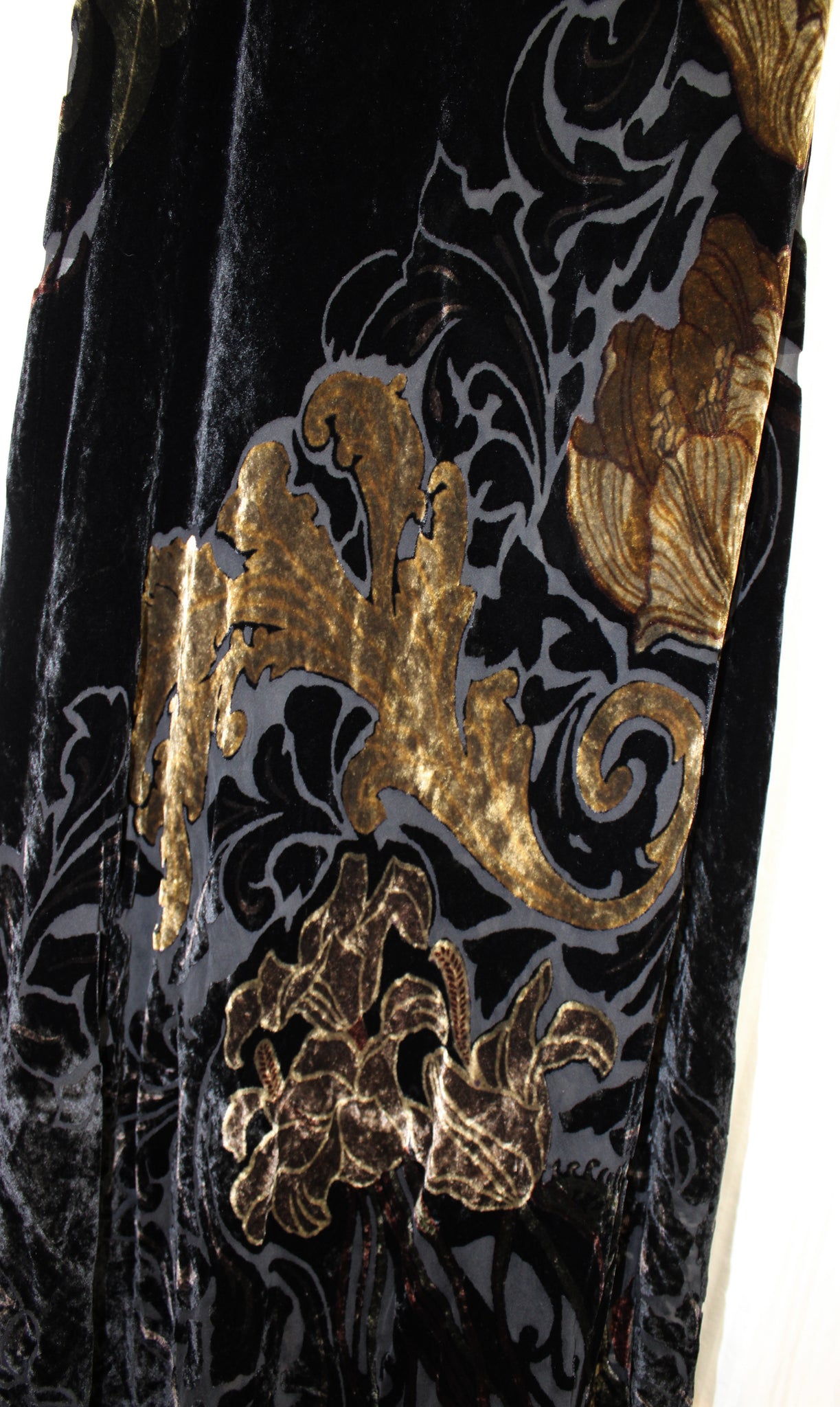 Citron Collection, Santa Monica - Black & Earth Tones Burn Out Silk Velvet Floral Paisley Maxi Skirt