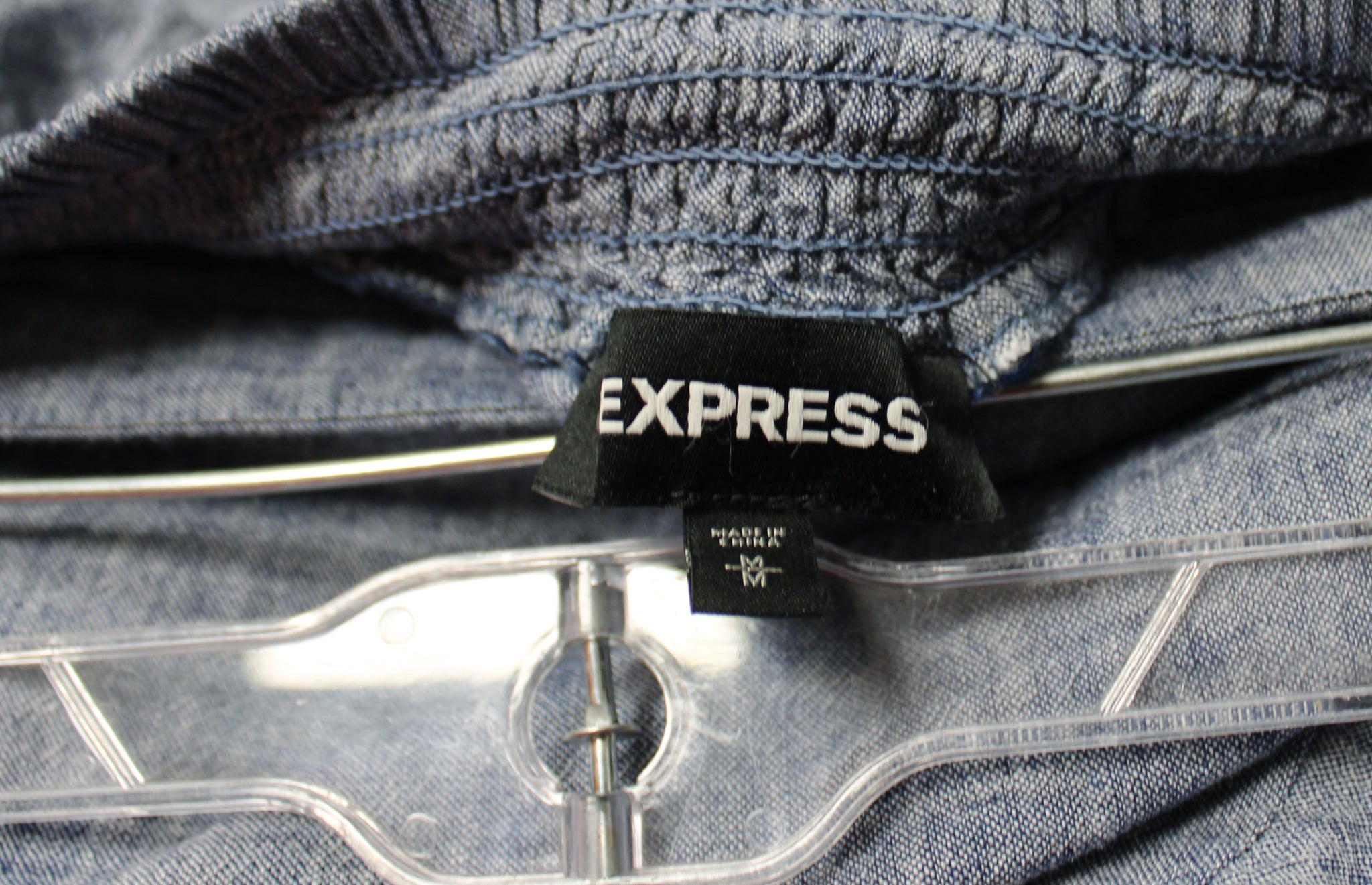 Express - Linen Blend, Elastic Back Waist, Cascading Ruffle Faux Wrap Maxi Skirt Size M 28" Waist39" Length55% Linen45% Cotton (Not Adjustable)