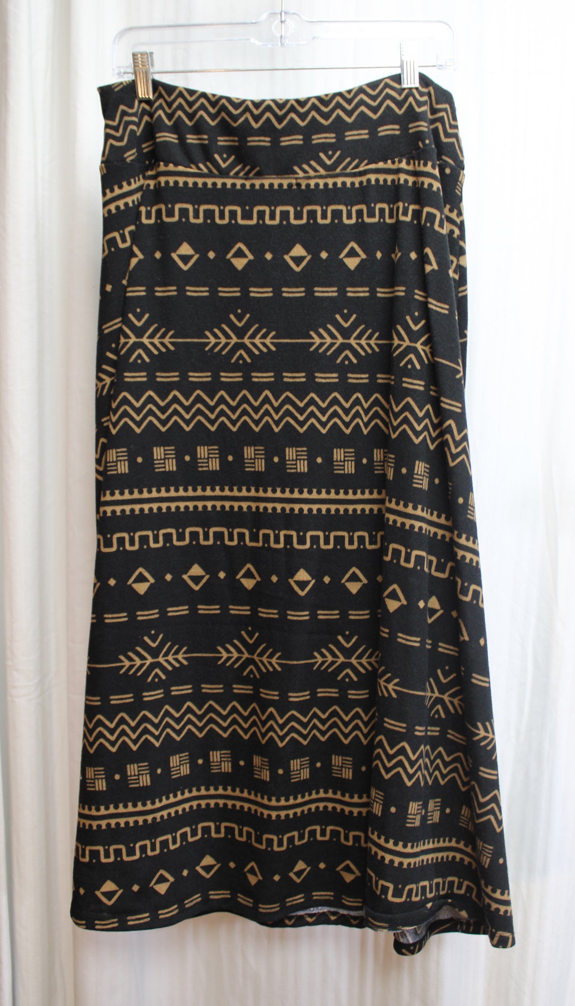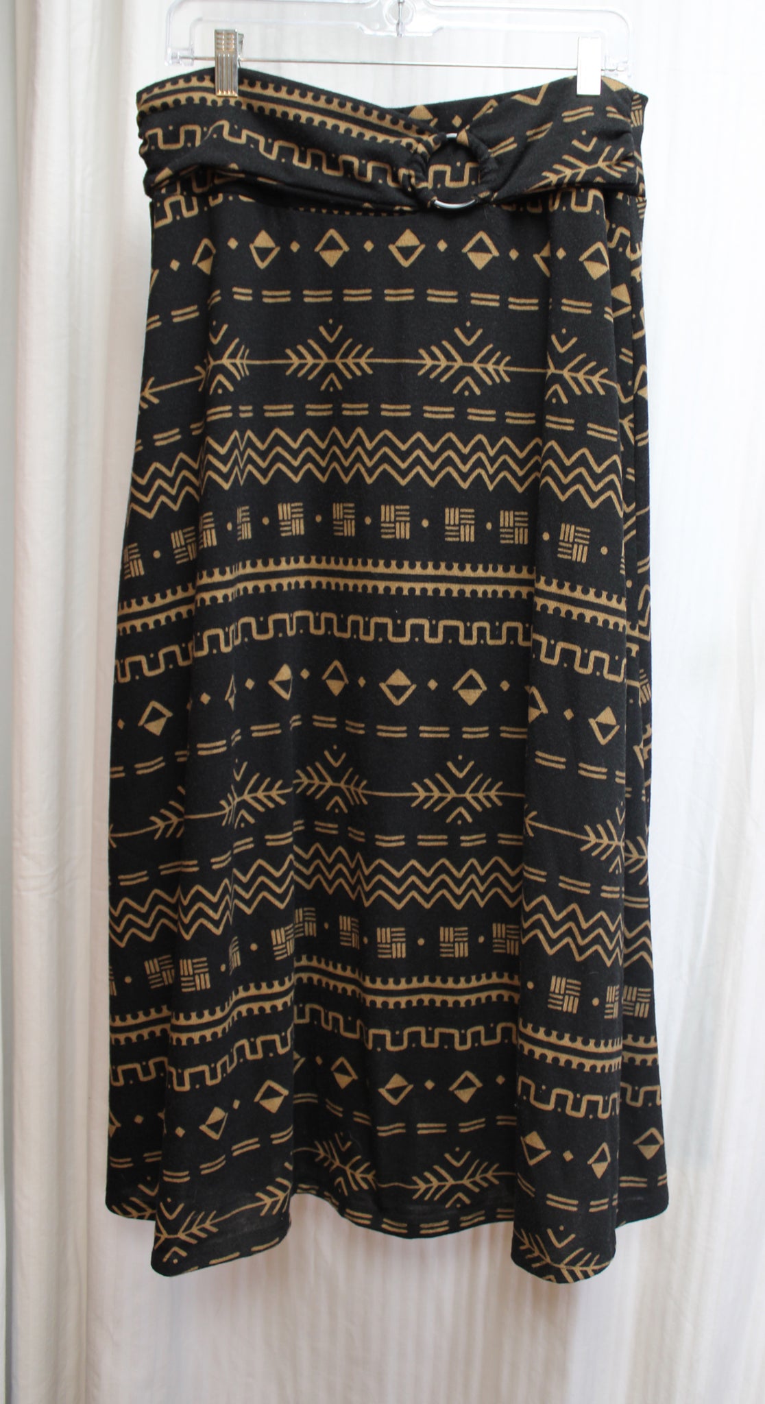 Robert Louis - Black & Brown Southwest Print Pull on A-Line Maxi Skirt Size L 32" Waist34.5" LengthSatin Lined