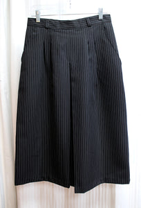 Vintage - Jerry Leigh of California - Black Pinstripe Single Box Pleat Front Midi Skirt - Size 11 (Vintage 27.25" Waist)