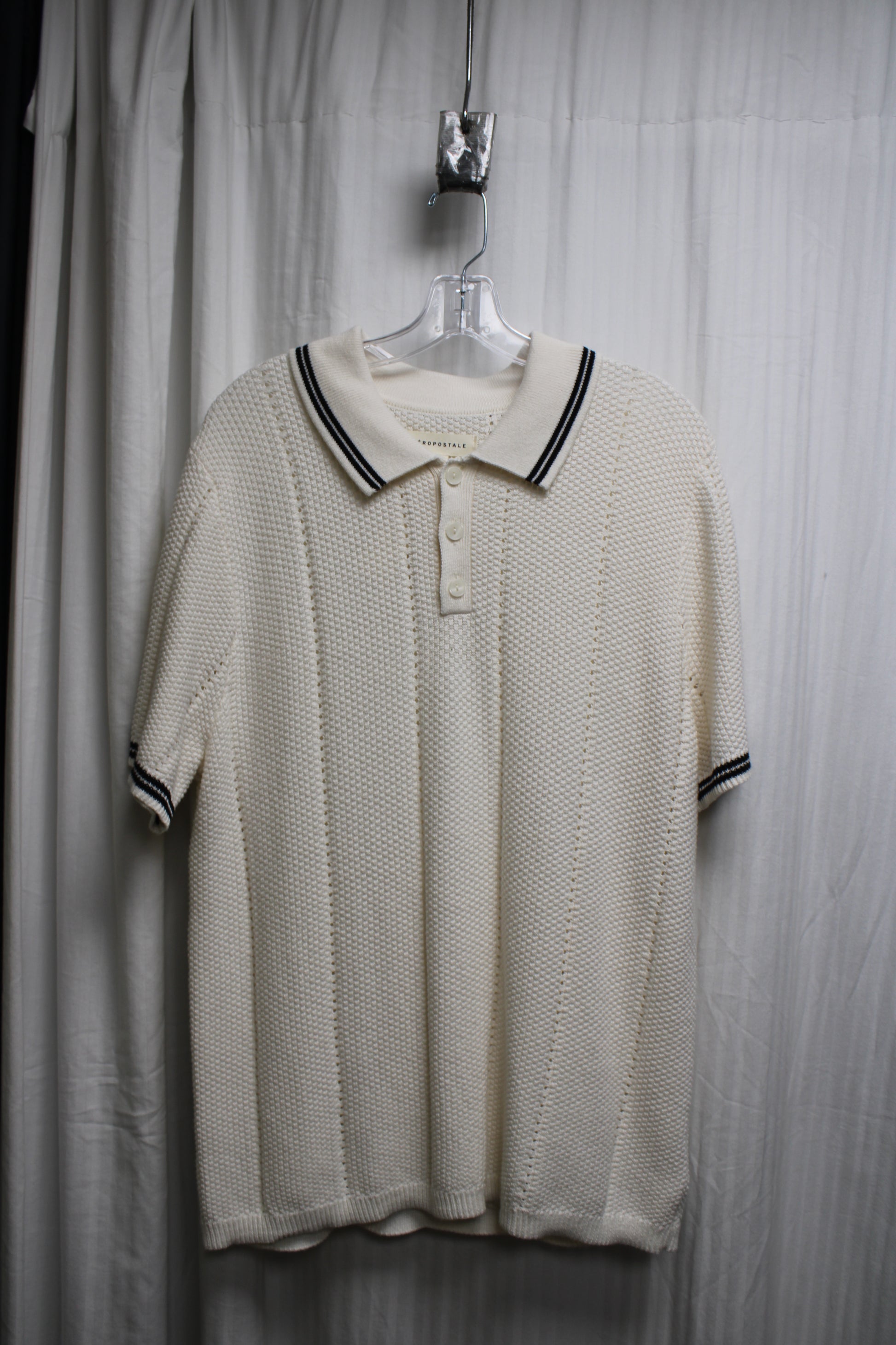White crocheted polo shirt by Aeropostale.