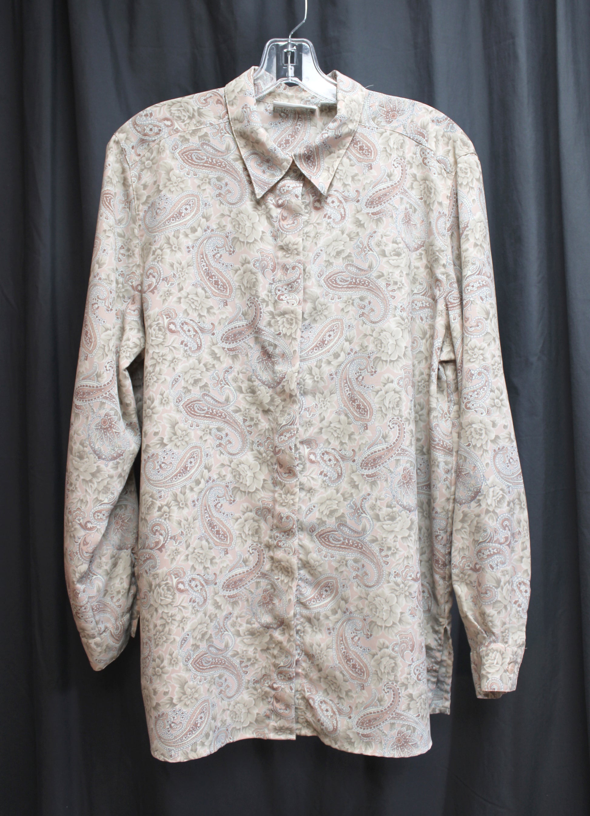 Alfred Dunner - Rose Beige Paisley & Floral Hidden Button Placket Shirt - Size 12
