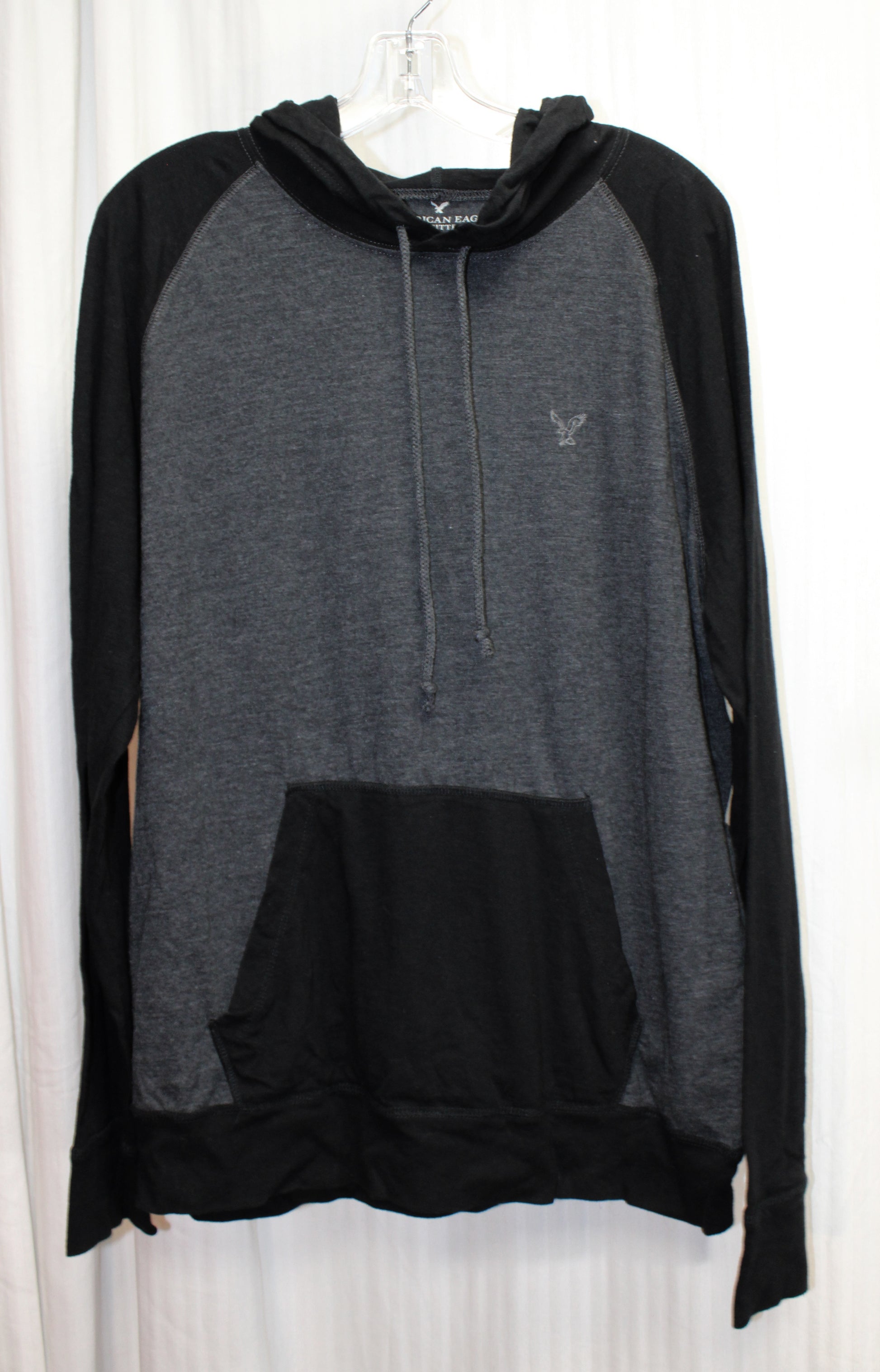 American Eagle Outfitters - Dark Gray & Black Ragland Long Sleeve Hooded Top - Size L