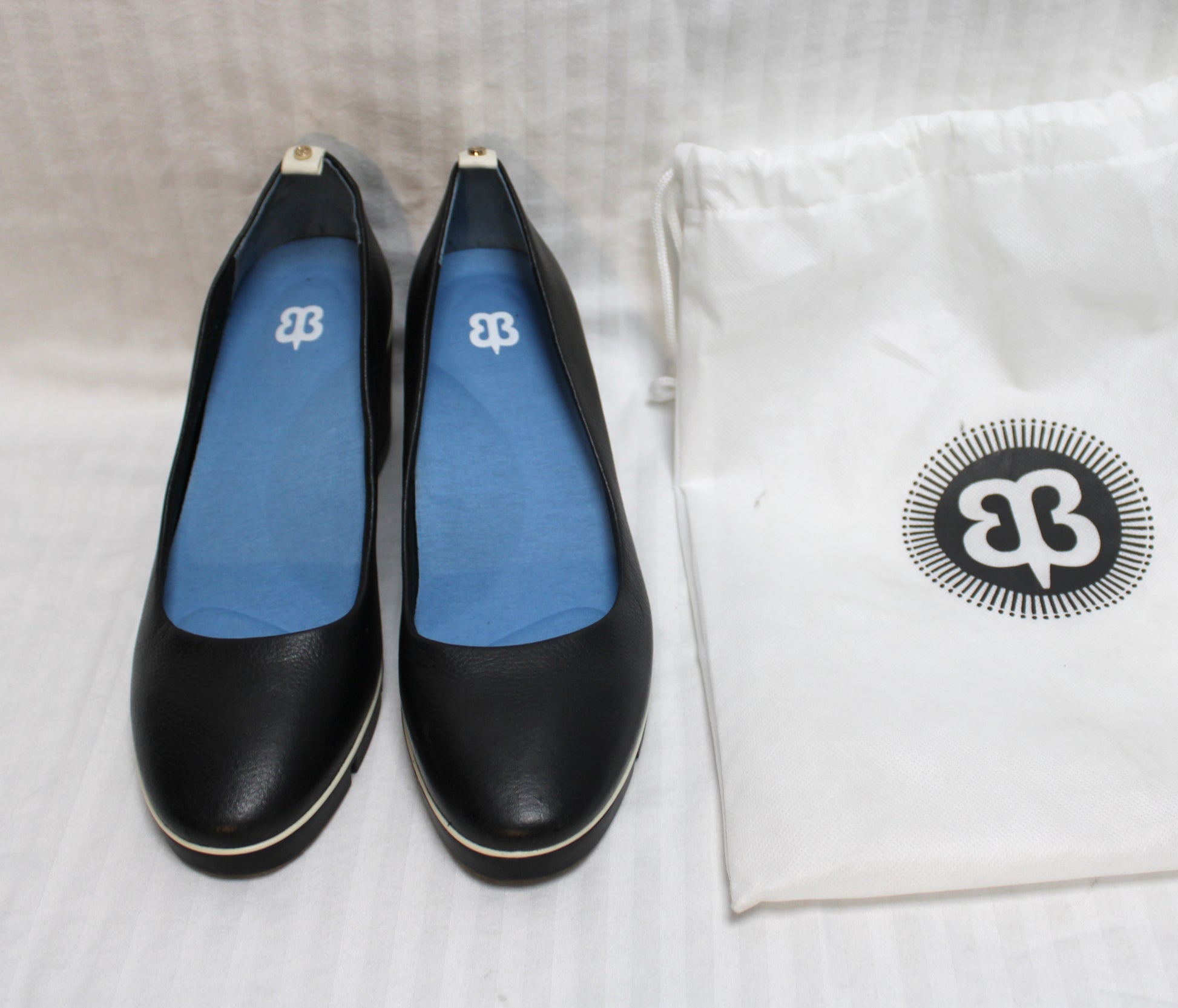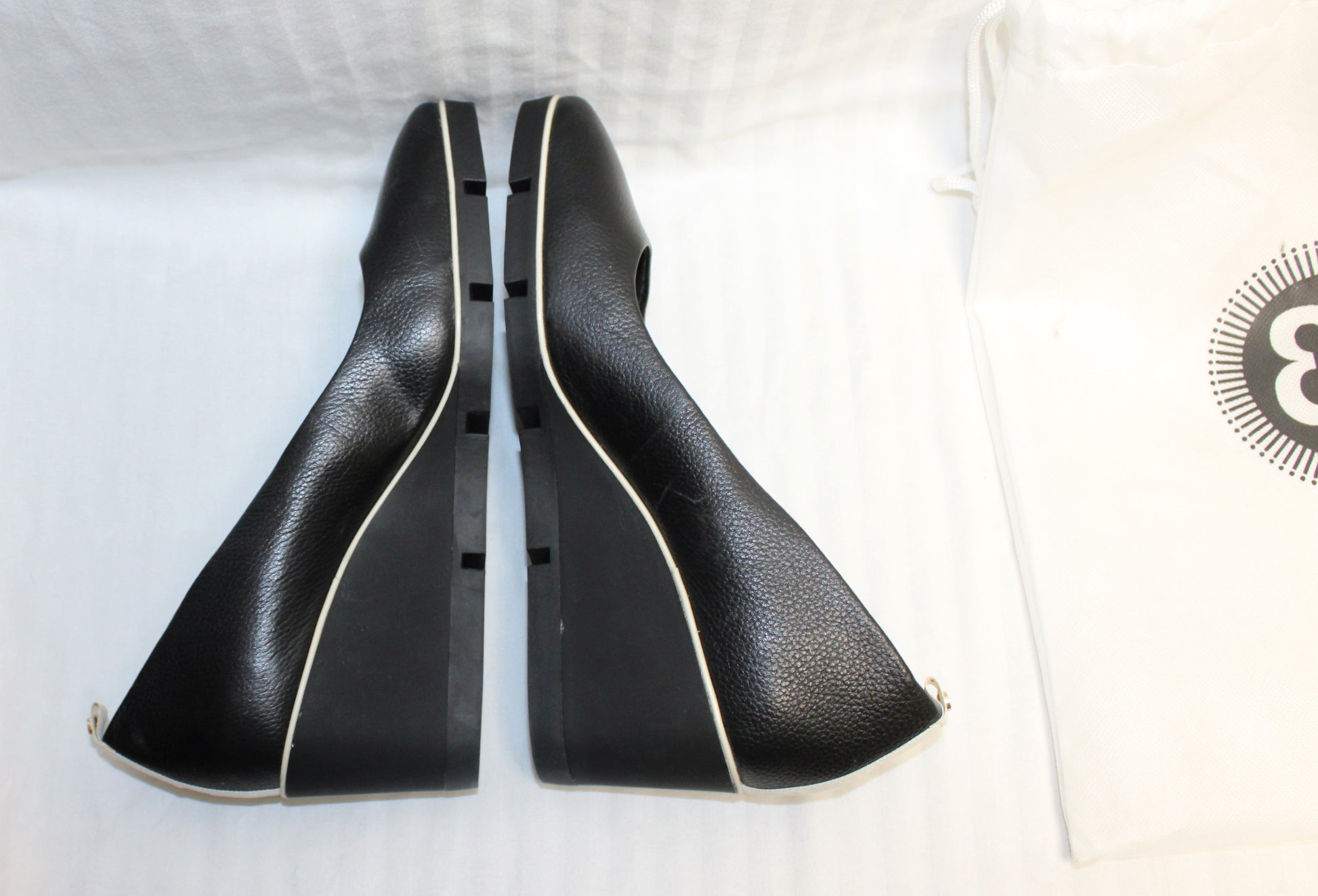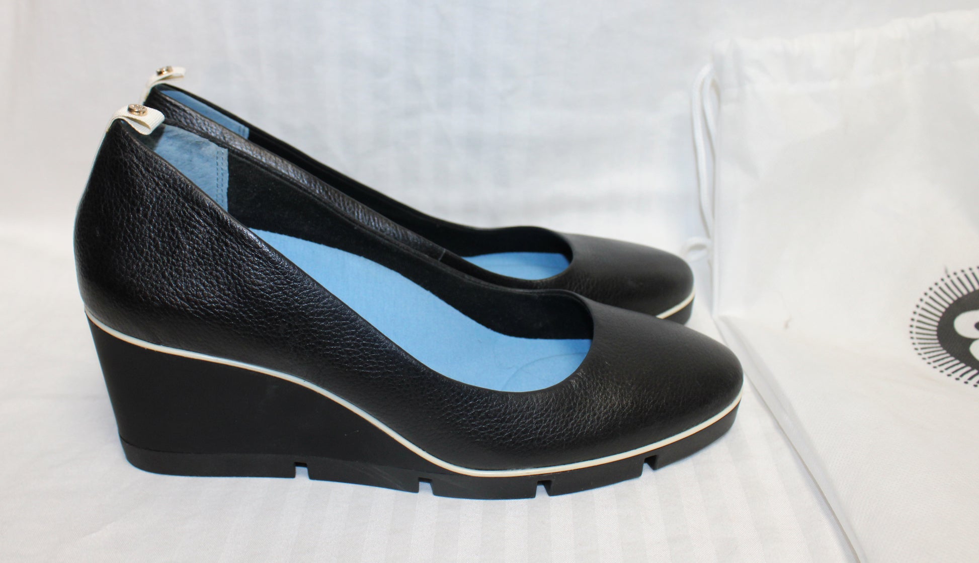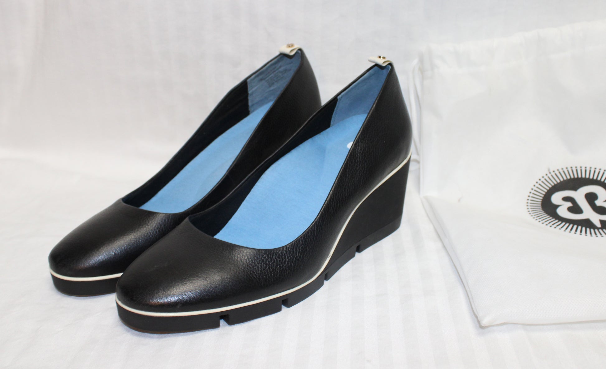 Betabrand - Leather Black Onyx w/ White Piping Wedge All Weather Pumps - Size 9.5