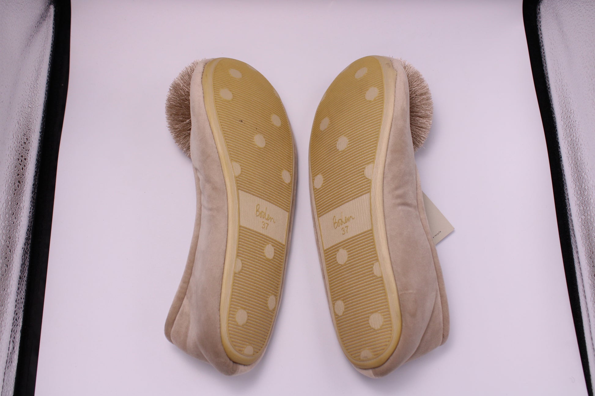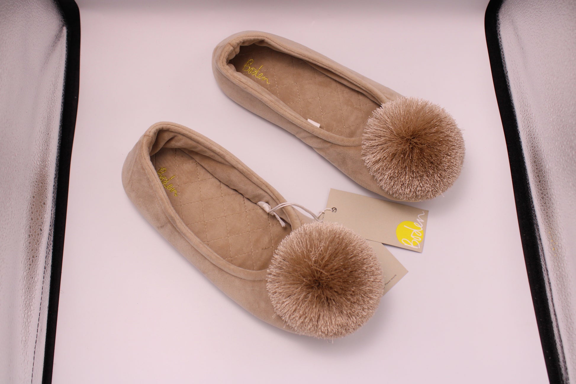 Tan pom pom slippers by Boden