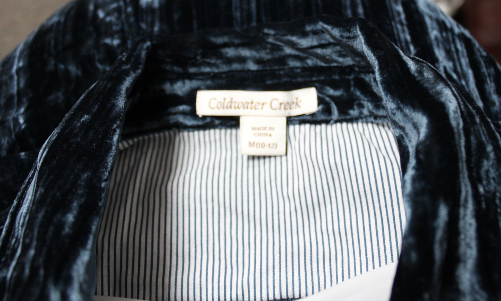 Coldwater Creek - Teal Blue Textured Velvet, Button Front Drawstring Waist Mini Dress