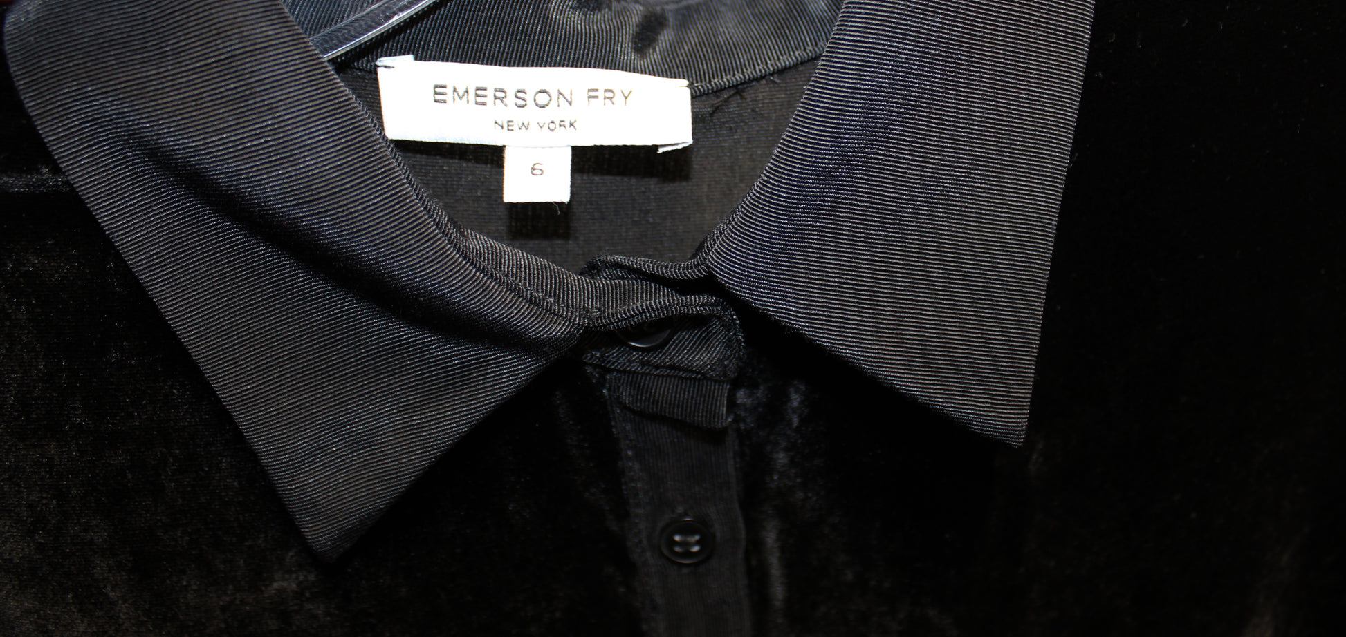 Emerson Fry - Black Velvet Collared, 3/4th Sleeve, Half Button Placket Shirt Dress - Size 6