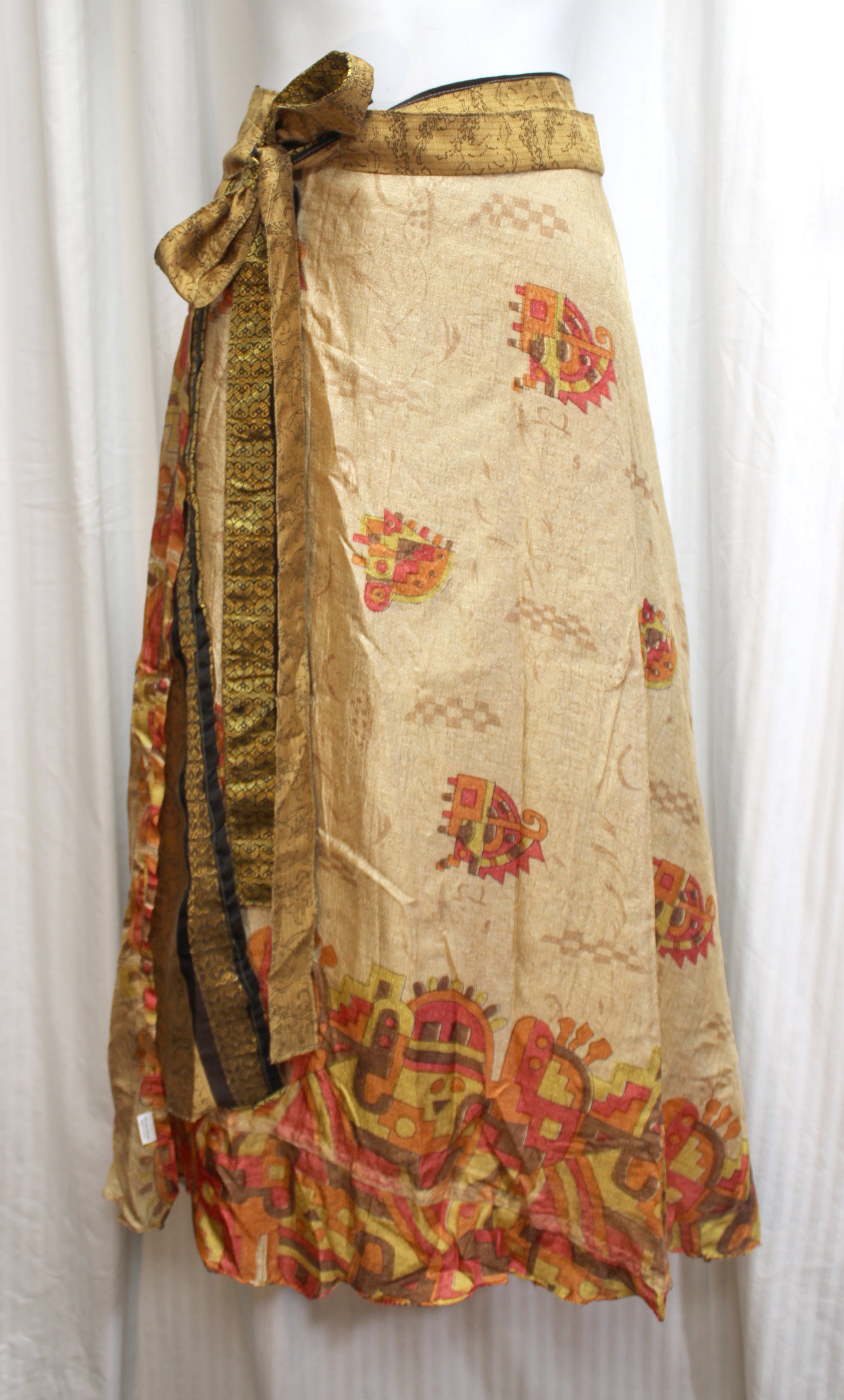 Exotic Print Reversible Silky Sari Fabric Wrap Skirt