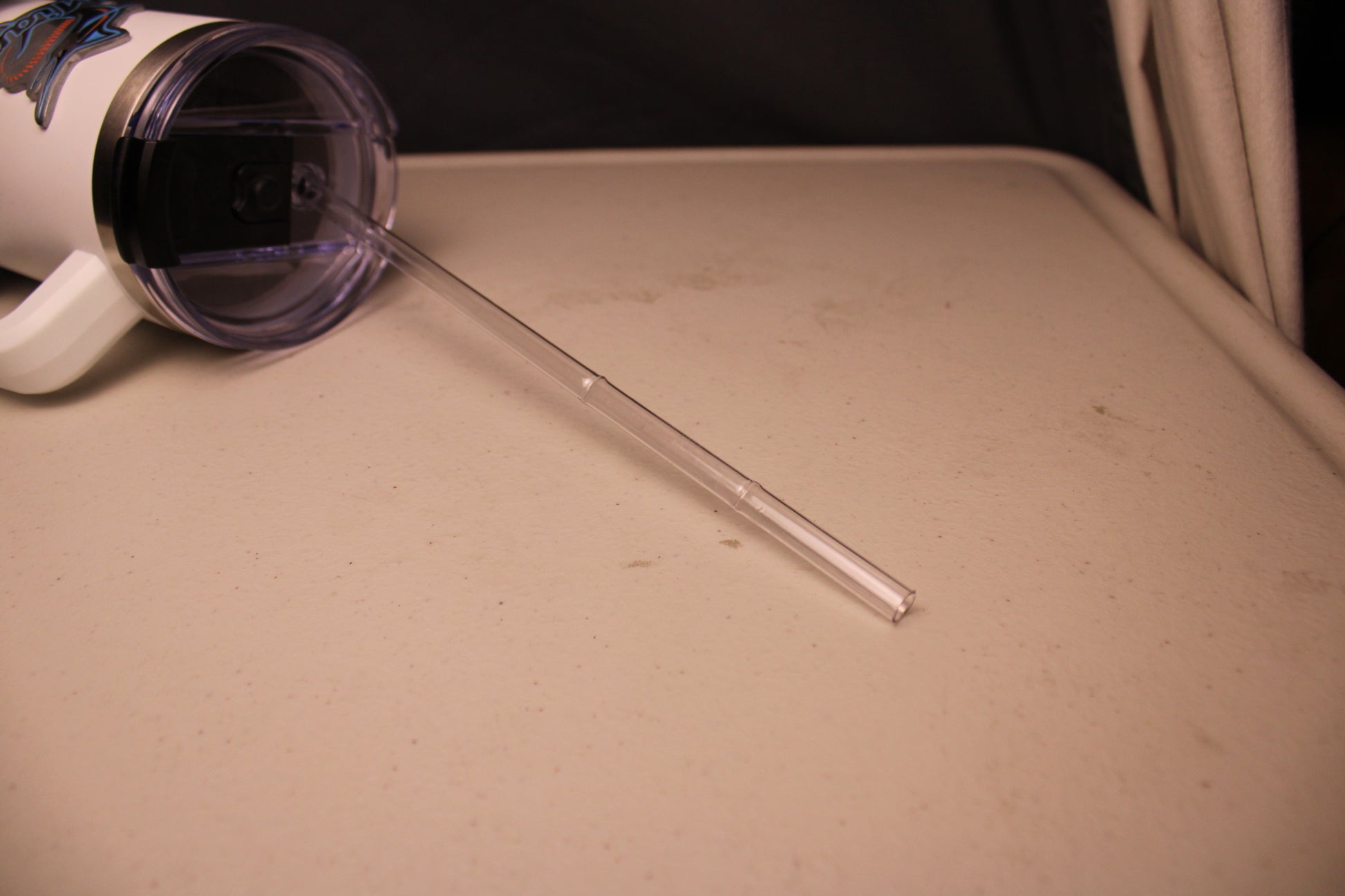 Flaws: The straw is kinked at multiple spots, the bottom has a dent and there are marks/blemishes to the exterior of the cup.