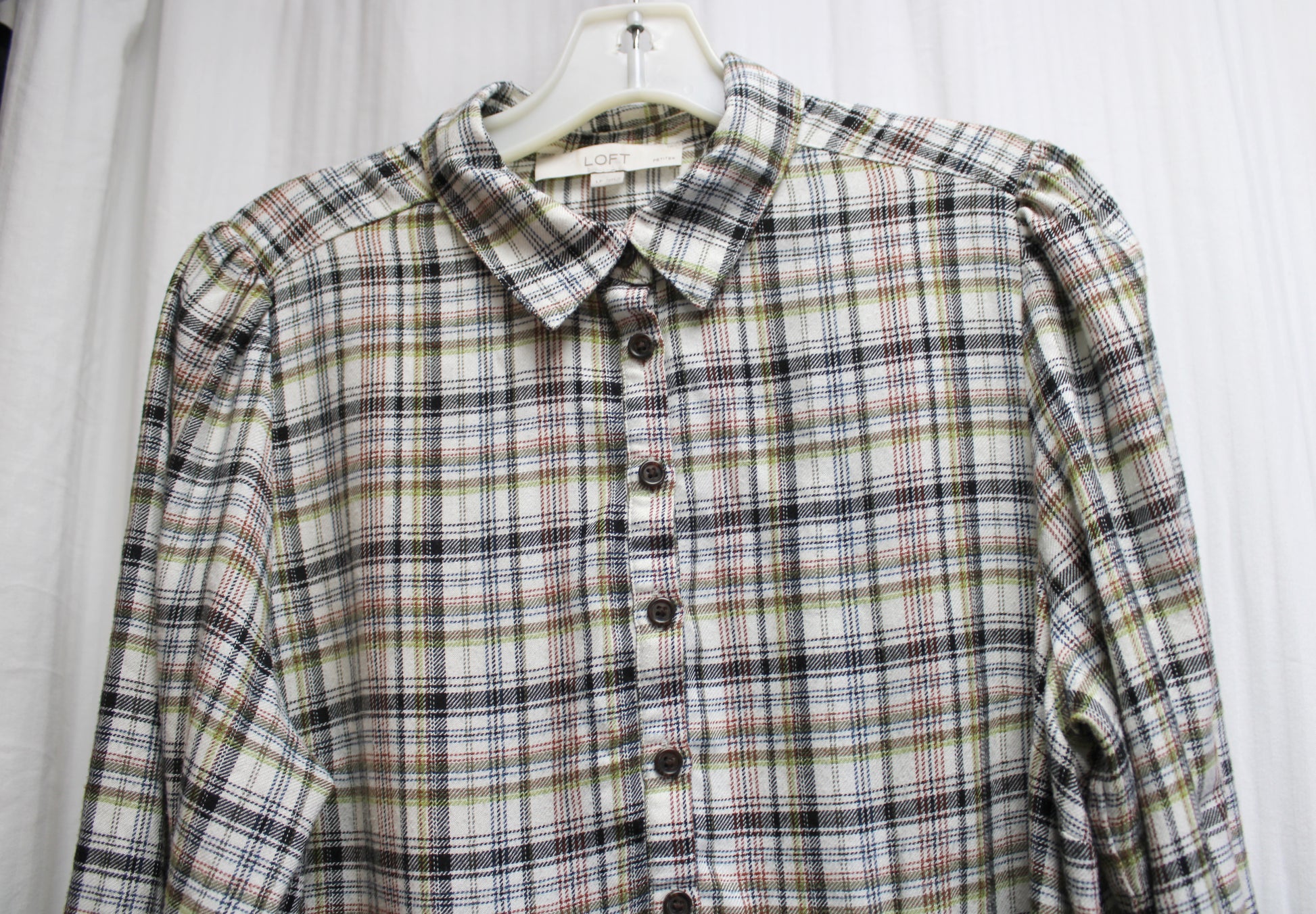 Loft - Flannel, Earth Tone Plaid Long Sleeve Short Dress