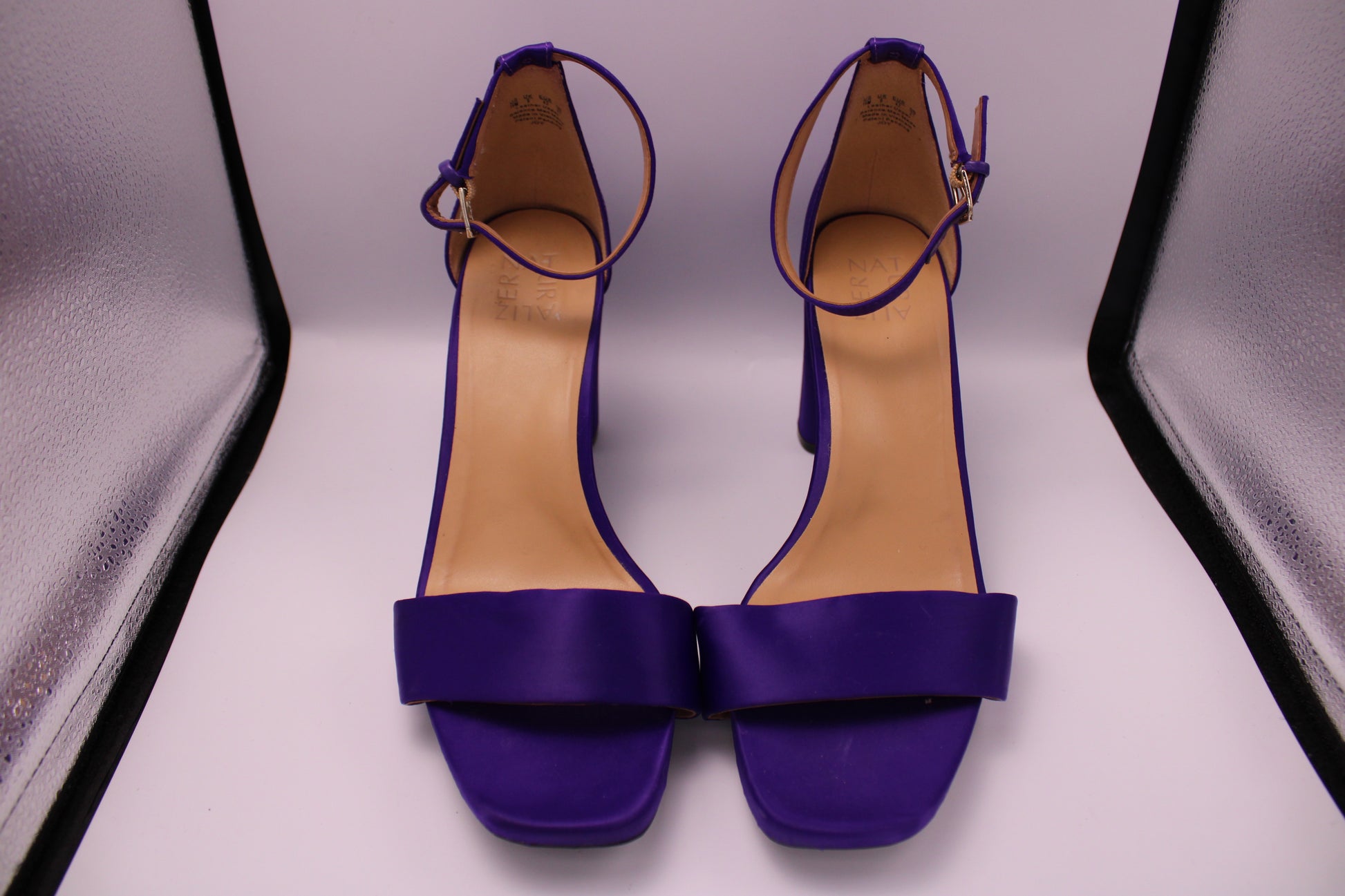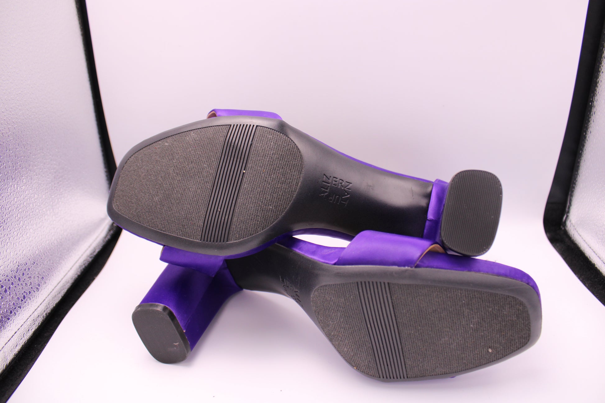 This purple Naturalizer Joy Sandal features a slim block heel with a modern square toe. The Contour + Comfort foam footbed is still fresh it has no memory from the previous owner.
