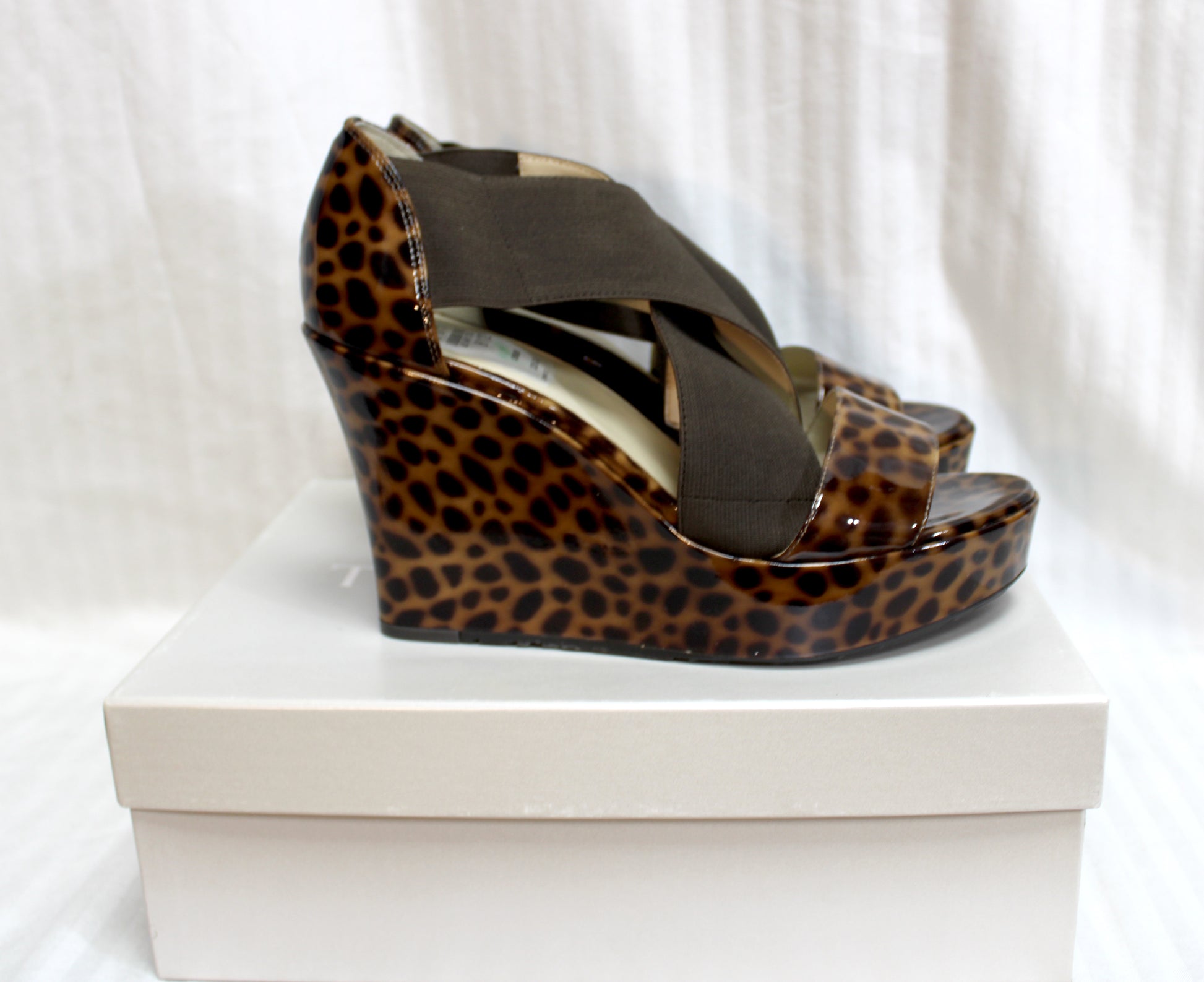 Taryn Rose - Sawyer Brown Leopard Print Patent Leather Wedge Platforms - Size 8.5