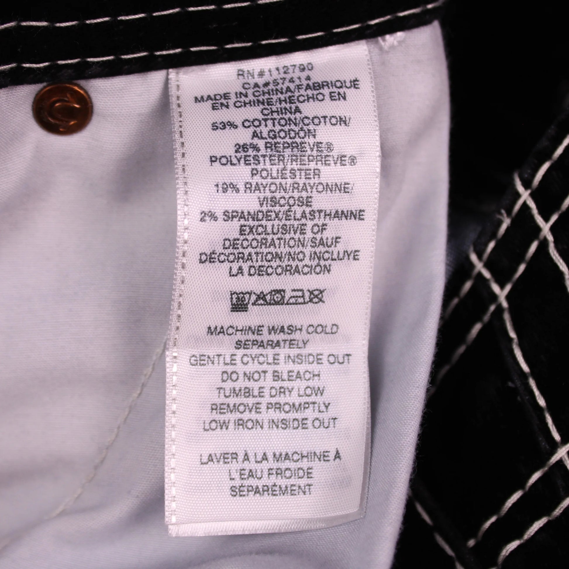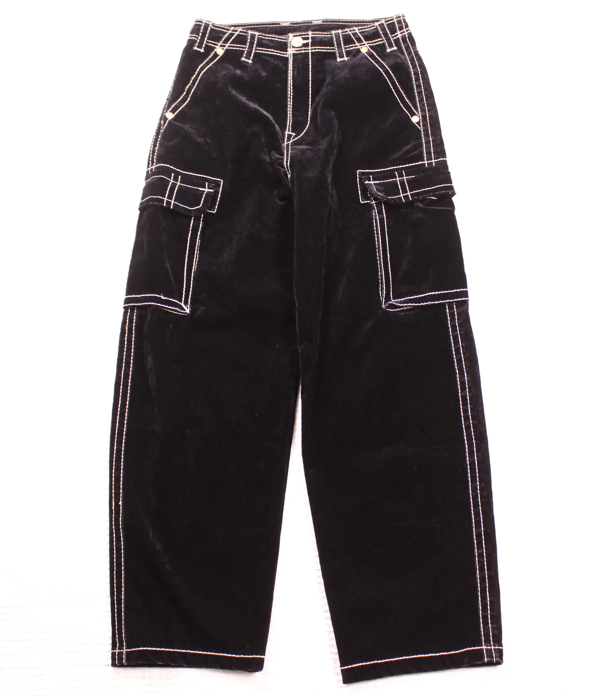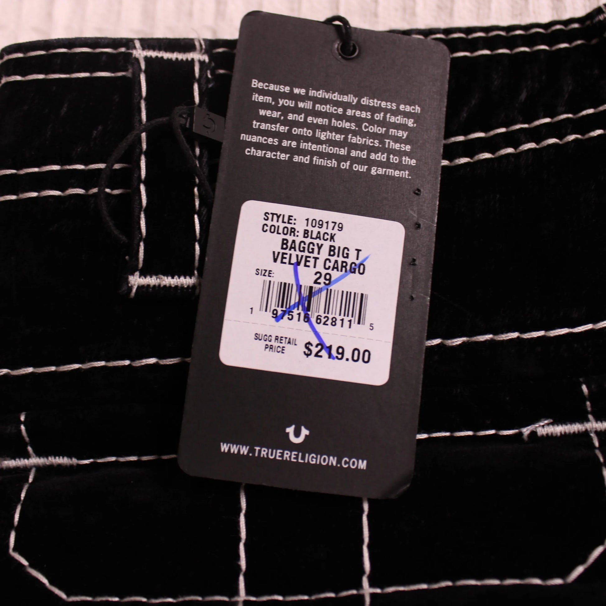True Religion - Black Baggy Big T Velvet Cargo Pants - Size 29