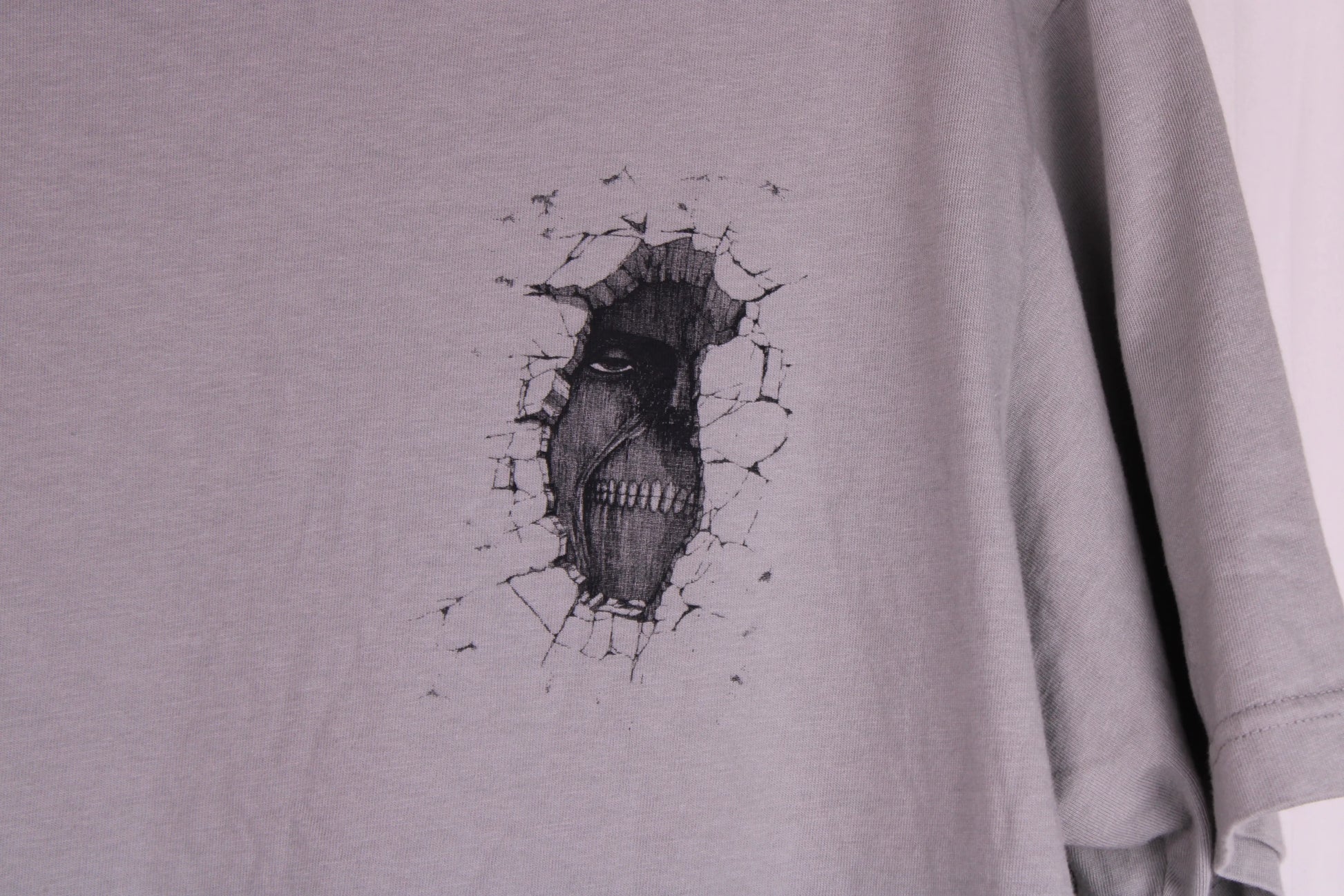 UNIQLO Attack on Titan graphic t-shirt features a subtle design of a Titan emerging from a wall.