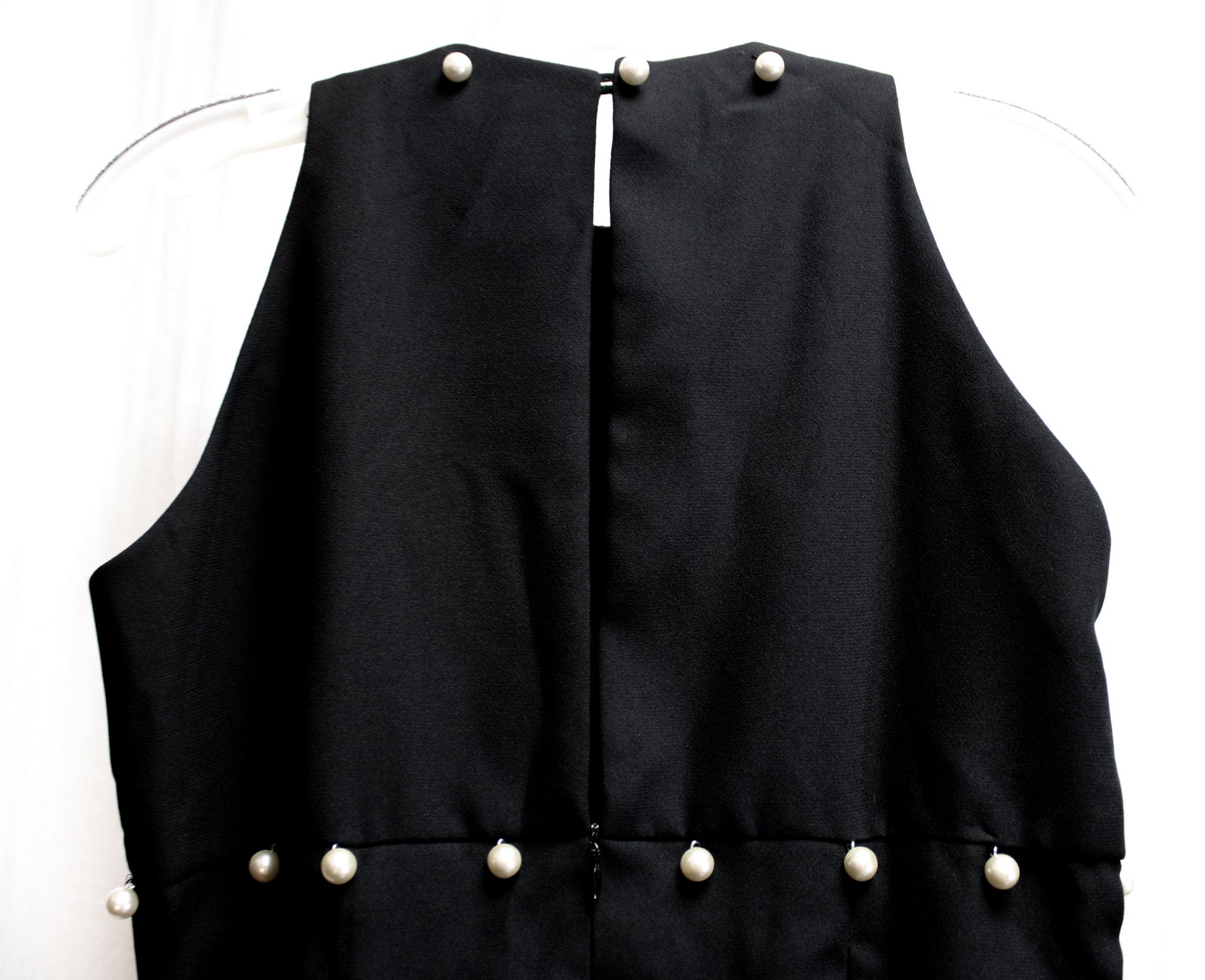 Watters and Watters - Black Sleeveless W/ Back Keyhole Slit Dress w/ Pearl Accents