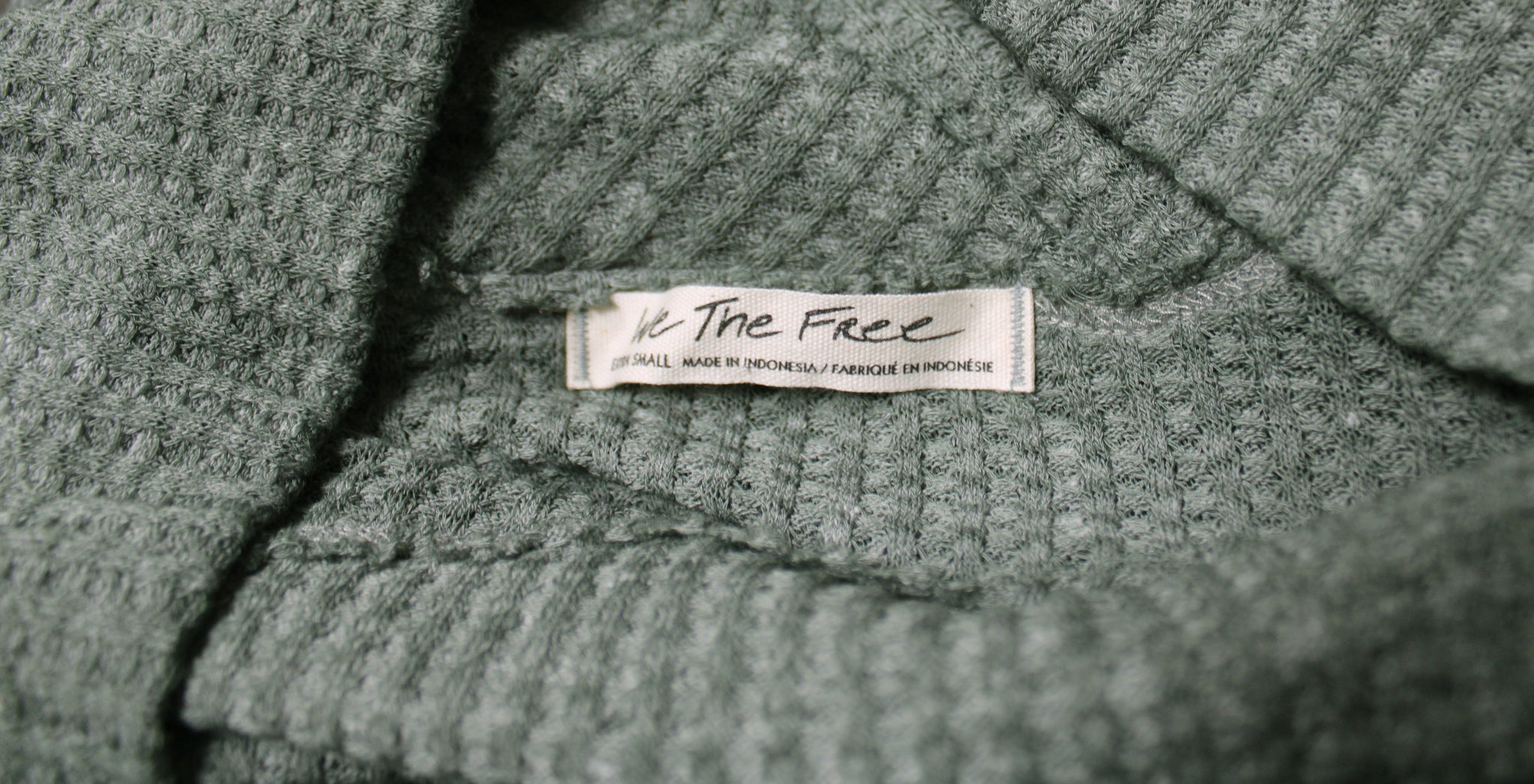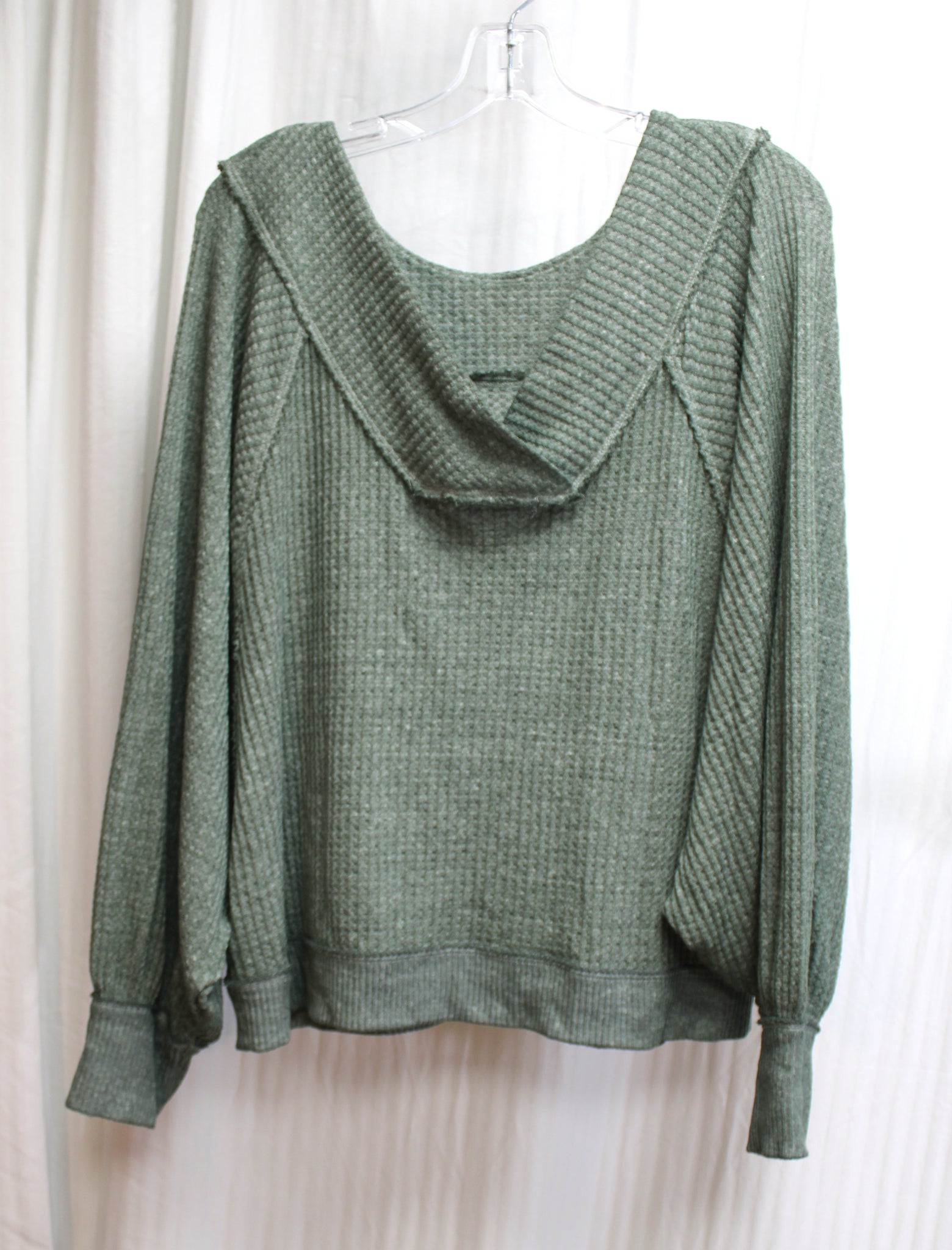 We the Free (Free People) = Oversized, Wide Neck, Ribbed Waffle Weave, Dolman Sleeve Pullover w/ Kangaroo Pocket Sweater Size S24" Length