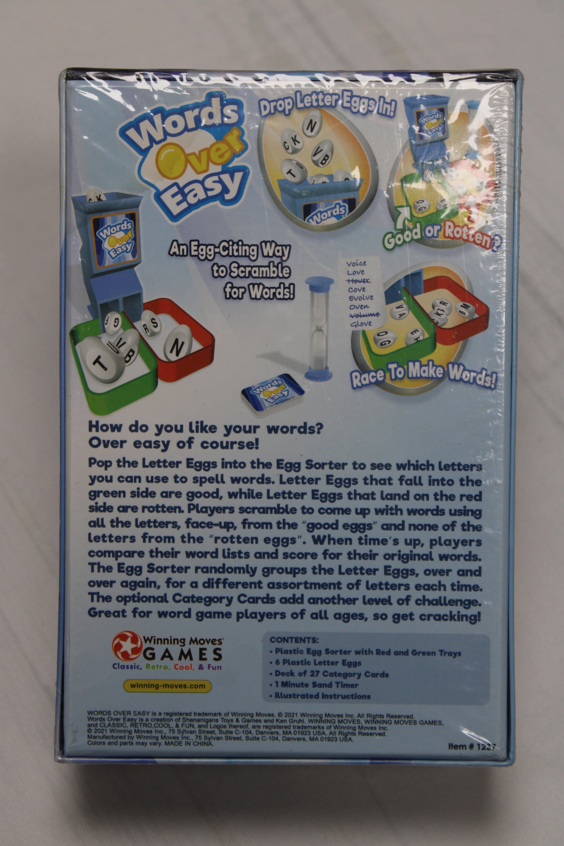 'Words Over Easy - An Egg-citing Way to Scramble for Words!' Game.